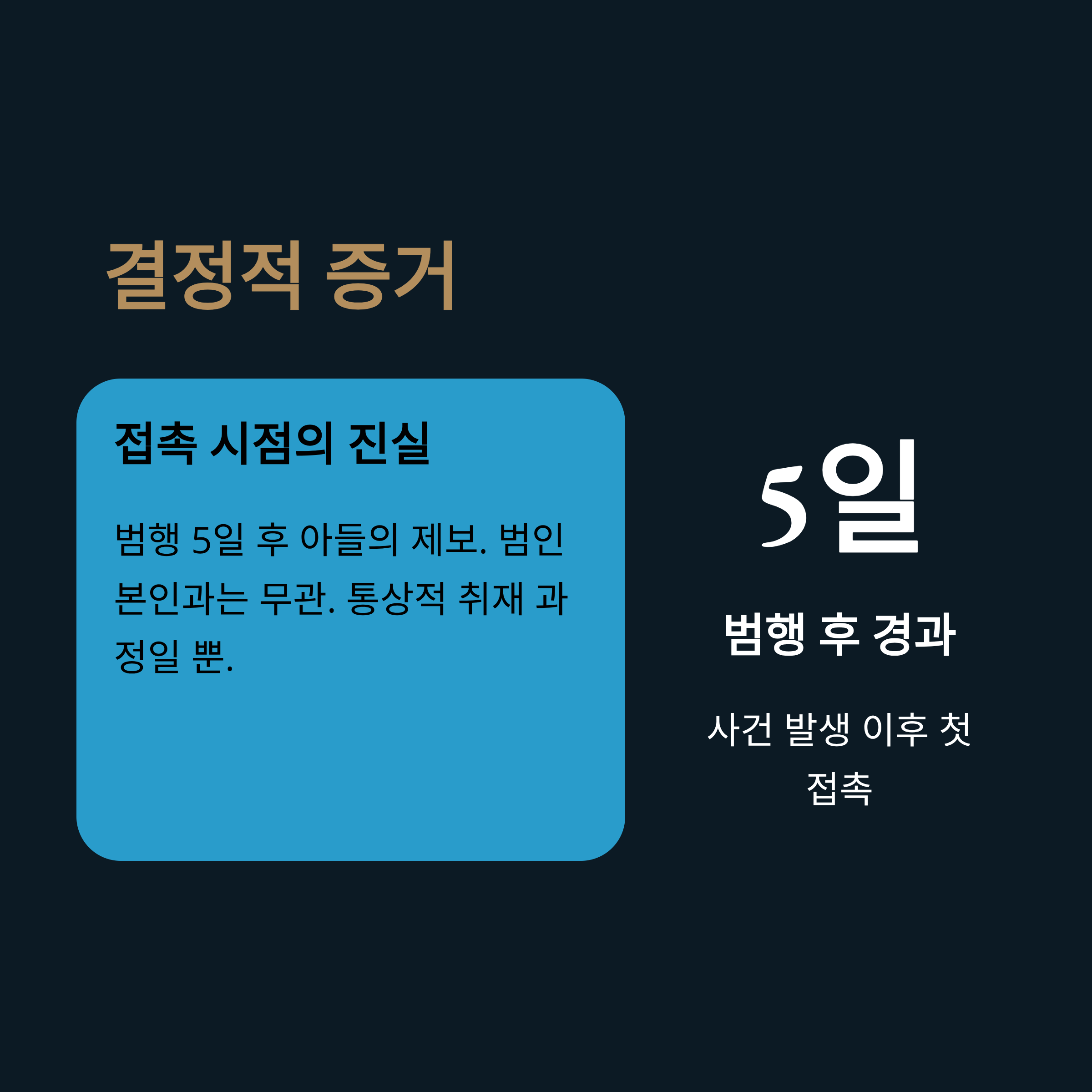 3. 실제 접촉 경위: 실제 통화는 사건 발생 5일 후, 테러범 김진성 아들이 부친의 '변명문' 보도를 요청하며 제보 문자를 보내온 것이 전부였습니다.