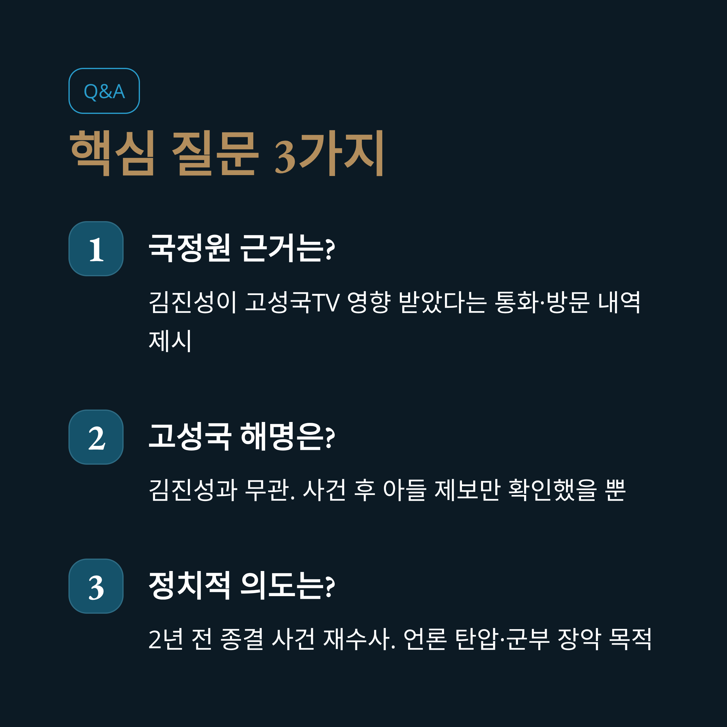 - 2. 핵심요약: 고성국 TV의 해명과 테러범 아들과의 접촉 전말