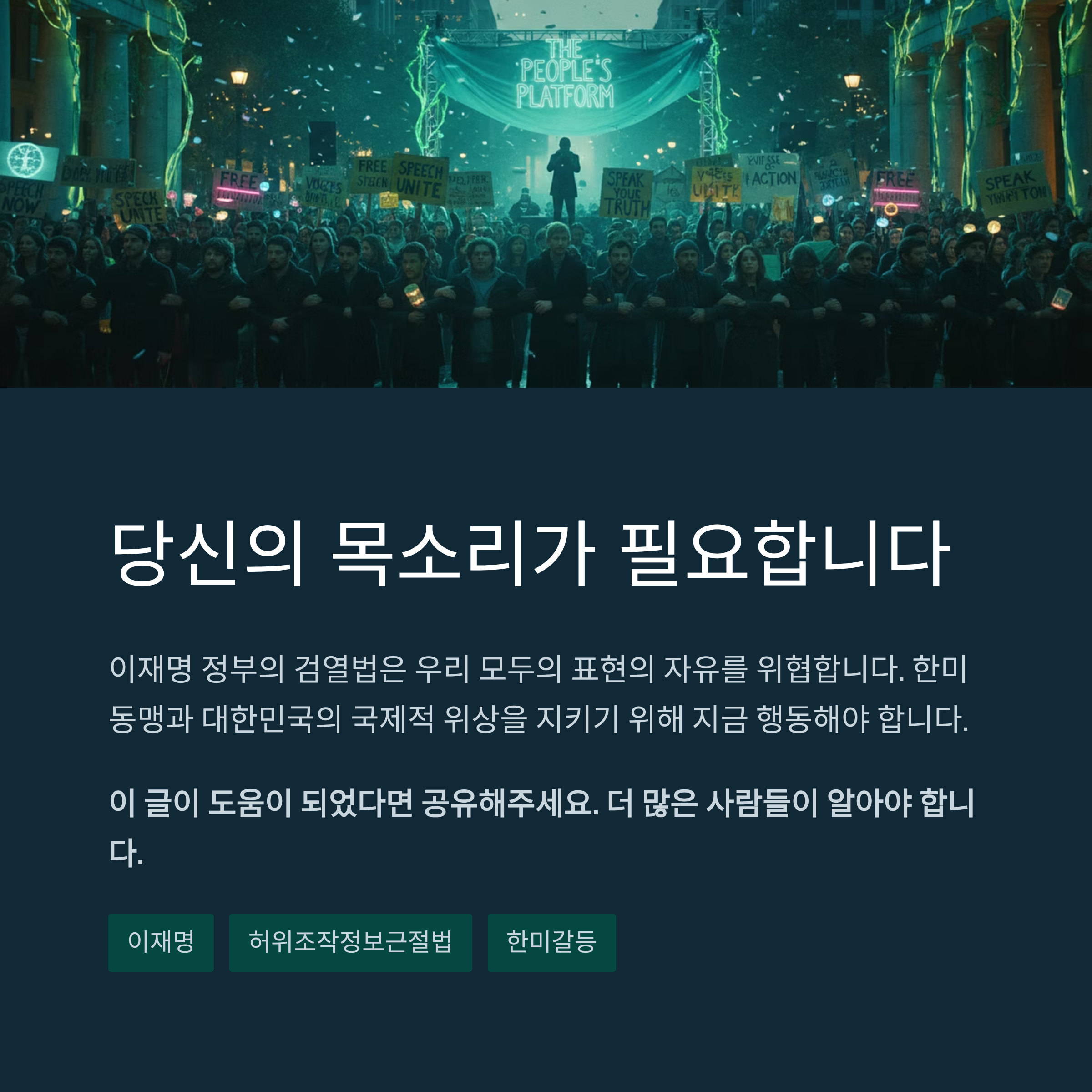 이재명, 허위조작정보근절법, 표현의자유, 한미갈등, 미국경고, 빅테크, 외교마찰, 검열법