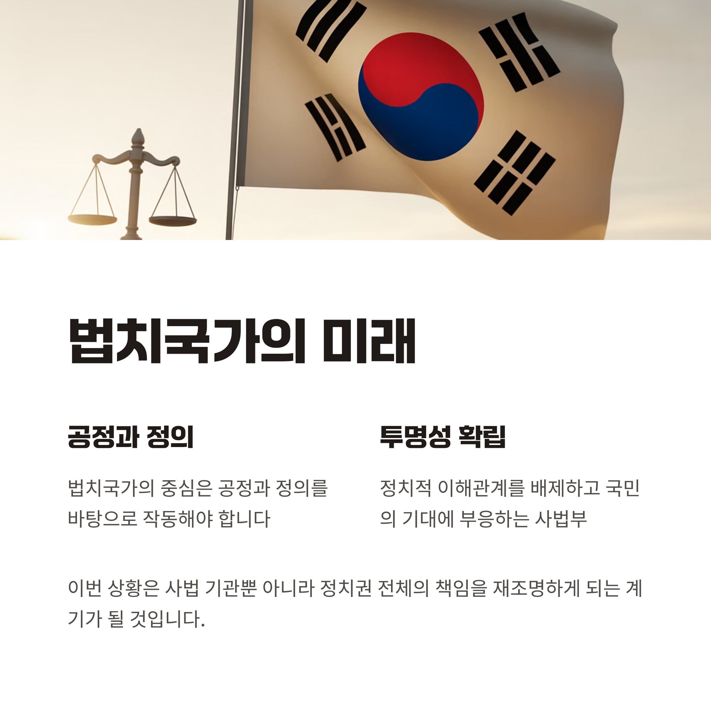 4. 국민적 관점에서 이번 이슈는 단지 특정인 재판 문제가 아닌 법과 정의의 본질적인 의미를 묻는 질문으로 확장되고 있습니다.