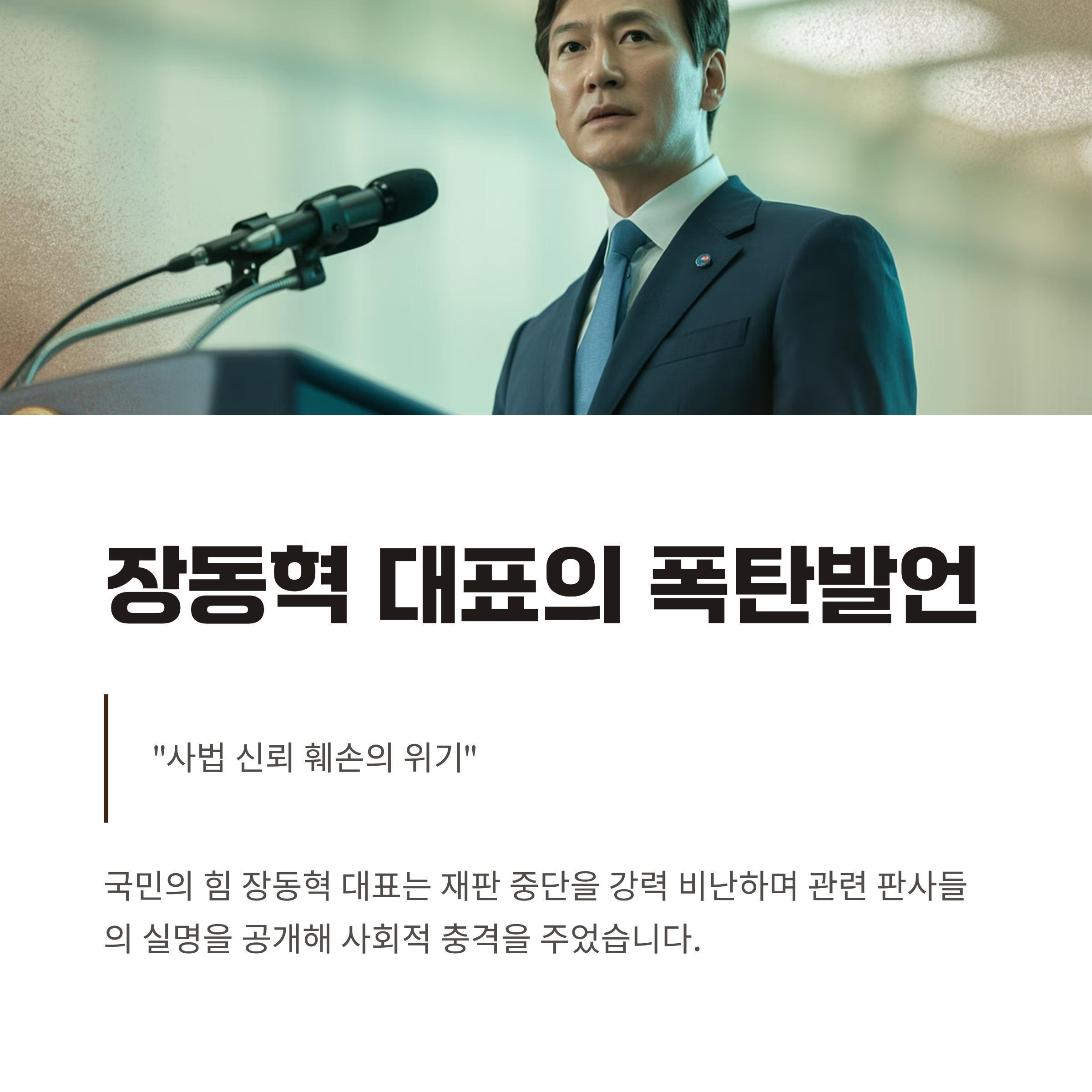이 글에서는 이재명 재판 중단 사태의 세부 상황과 장동혁 대표의 발언을 중심으로 사법부와 정치권 내부 논란을 종합적으로 분석하고, 미래 방향성을 제시하고자 합니다.