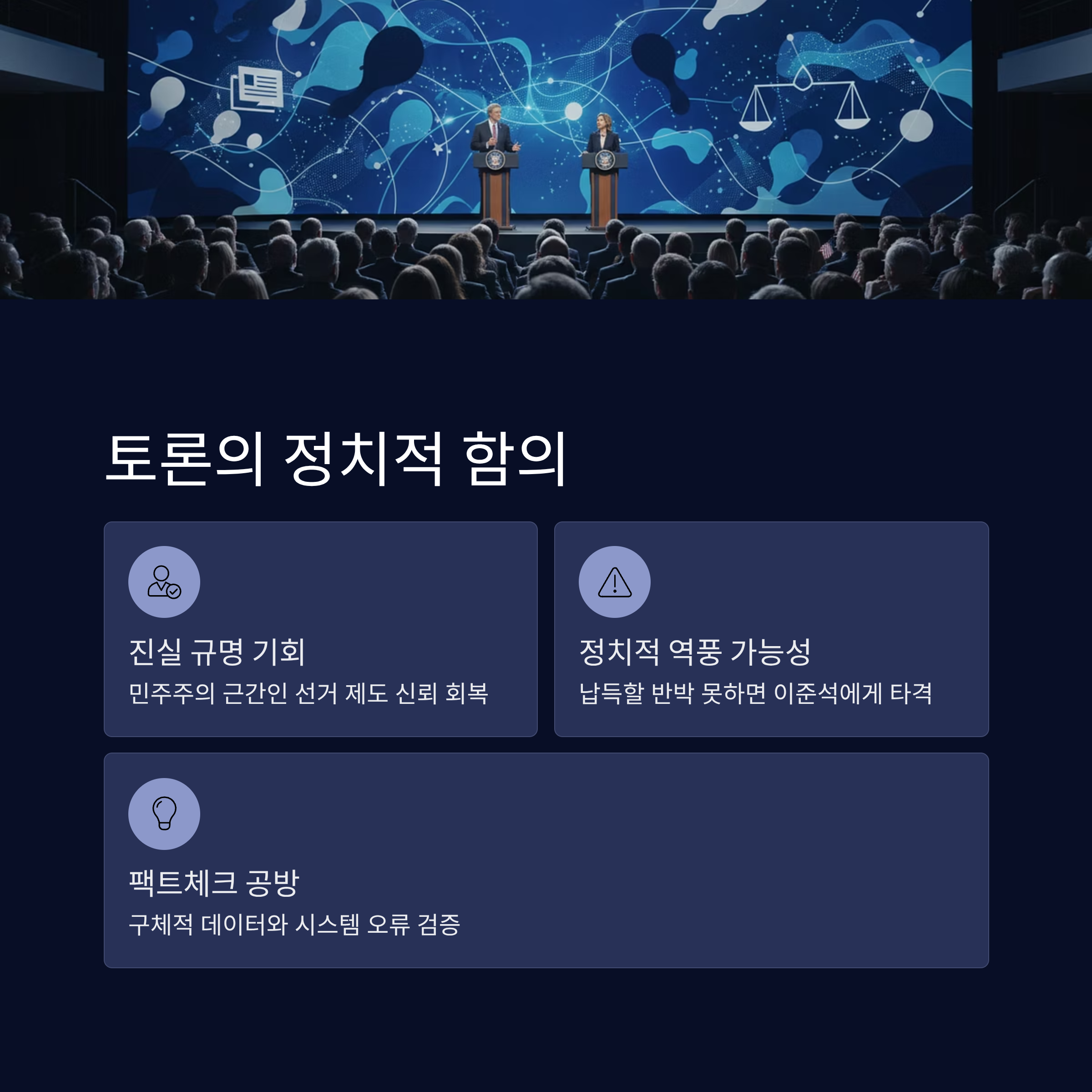 - 분석: 토론의 정치적 함의, 부정선거 증거 공방, 국제적 흐름과 연대