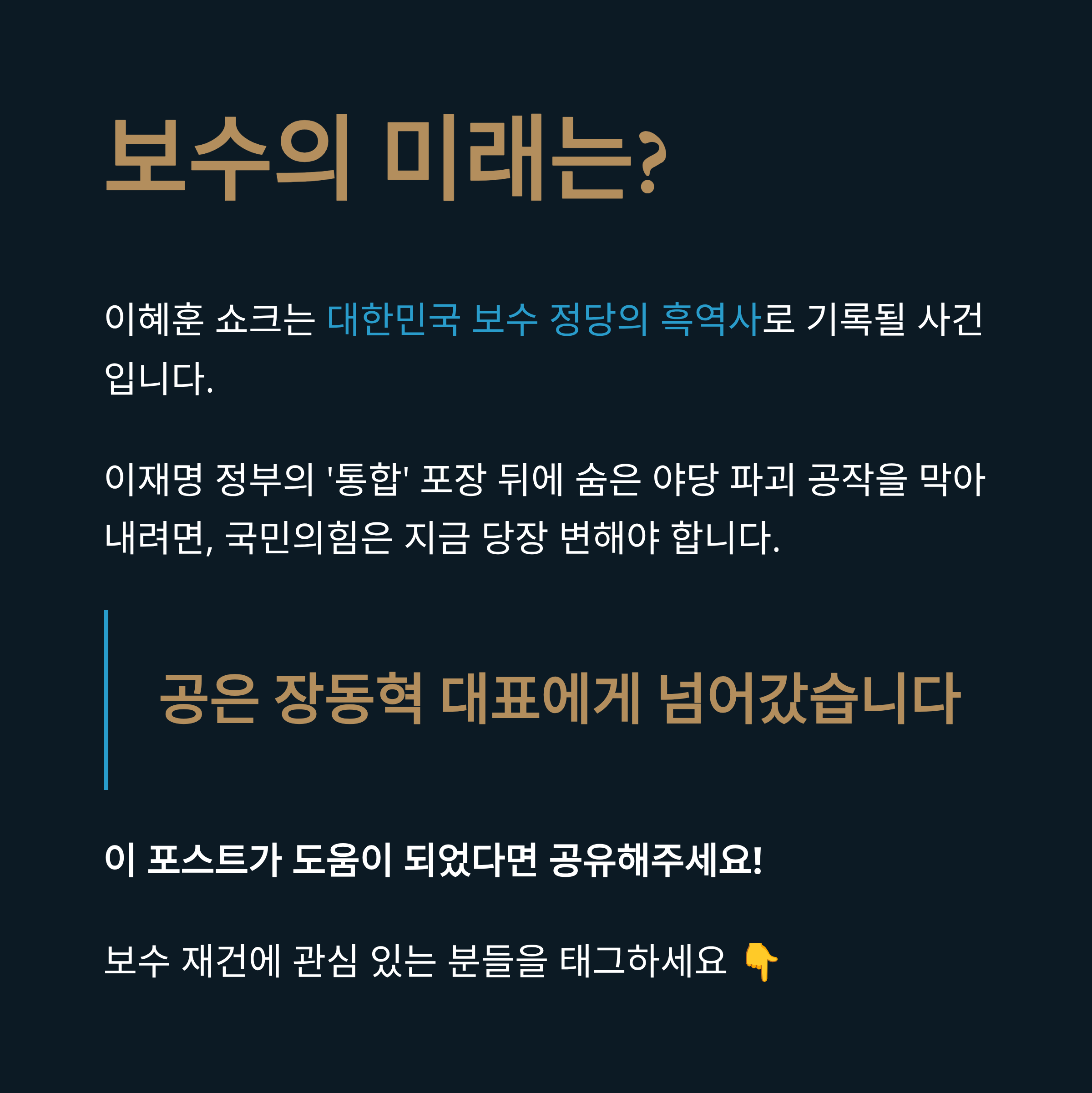 이혜훈, 이재명, 국민의힘, 장동혁, 홍준표, 조경태, 기획예산처장관, 정치배신, 가룟유다, 보수분열, 원외당협위원회, 정청래, 윤석열, 민주당, 내각인선, 정계개편, 배신자프레임