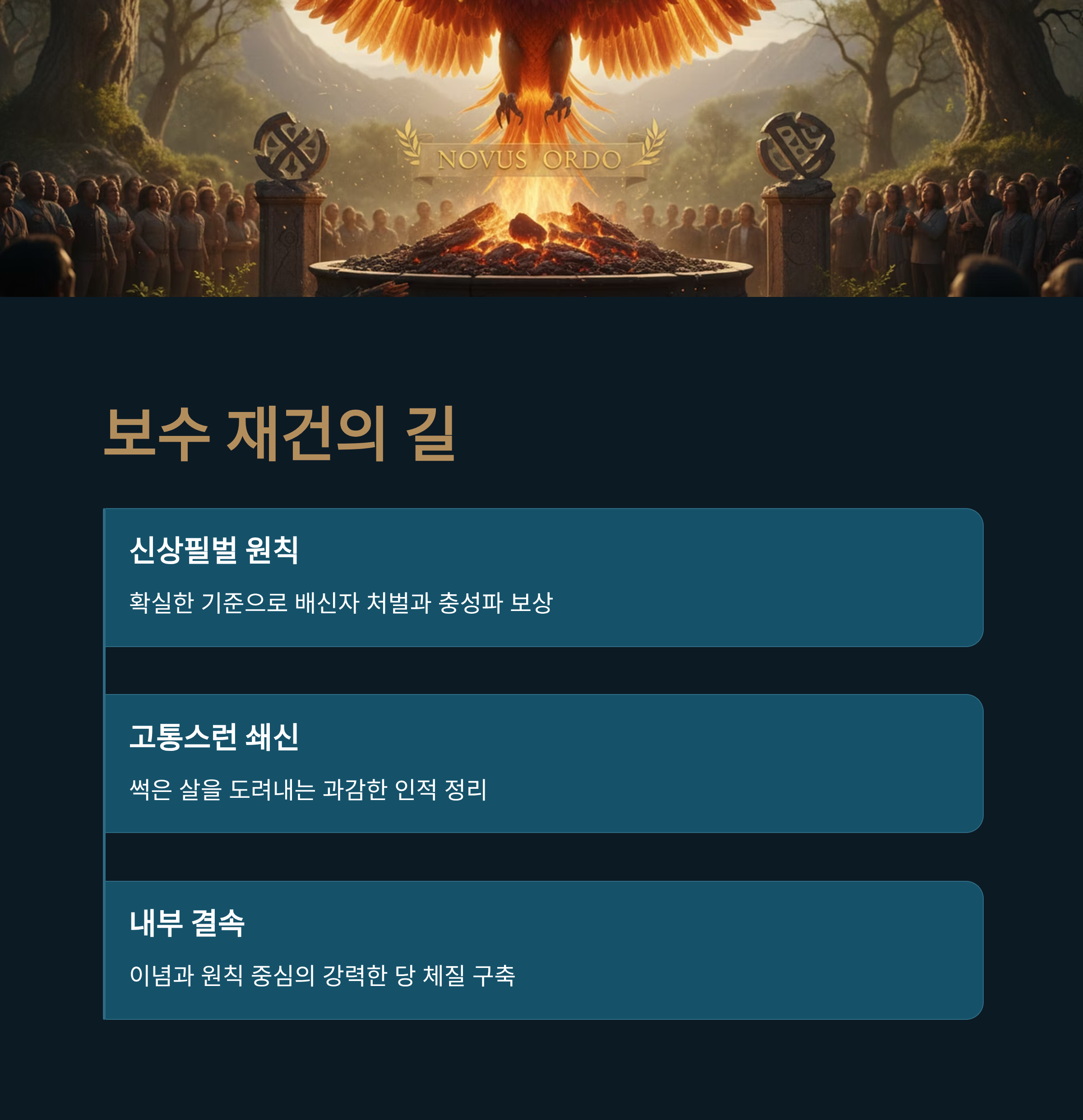 이혜훈의 기획예산처 장관 내정은 단순한 인사 이동이 아니라, 대한민국 보수 정당의 흑역사로 기록될 만한 사건입니다. 이재명 정부는 이를 '통합'으로 포장하겠지만, 실상은 야당 파괴 공작에 가깝습니다. 그러나 더 큰 문제는 이러한 공작에 쉽게 무너지는 국민의힘 내부의 허약한 체질입니다. '가룟 유다'라는 원색적인 비난이 나올 만큼 지지층의 분노는 극에 달해 있습니다. 이제 공은 국민의힘 지도부, 특히 장동혁 대표에게 넘어갔습니다. 흔들리는 당을 바로잡기 위해서는 배신자 프레임에 갇혀 서로를 비난하는 것을 넘어, 확실한 신상필벌의 원칙을 세워야 합니다. 보수 재건은 썩은 살을 도려내는 고통 없이는 불가능함을 직시해야 할 때입니다.