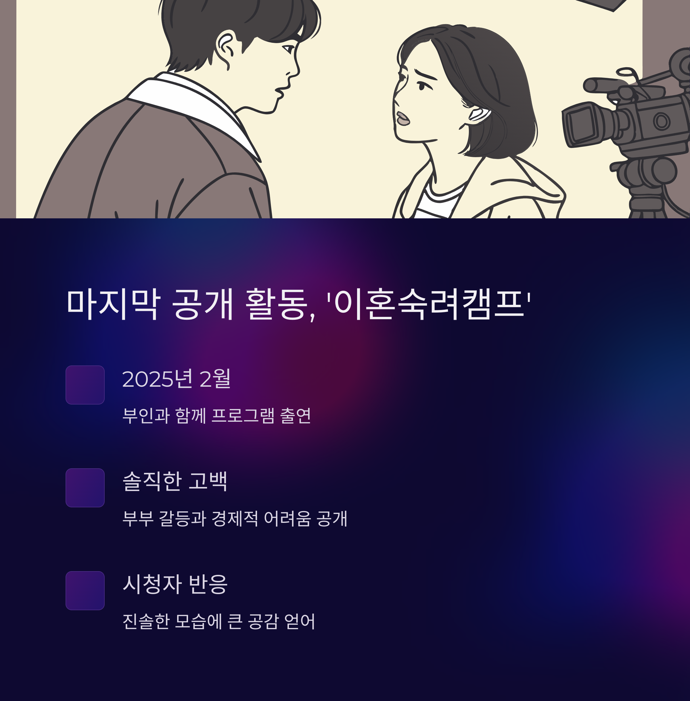 3. 이번 사건은 JTBC ‘이혼숙려캠프’ 출연 후 약 2개월 만에 발생했으며 당시 부부 문제와 경제적 어려움을 솔직히 나눠 시청자들에게 깊은 인상을 남겼습니다.