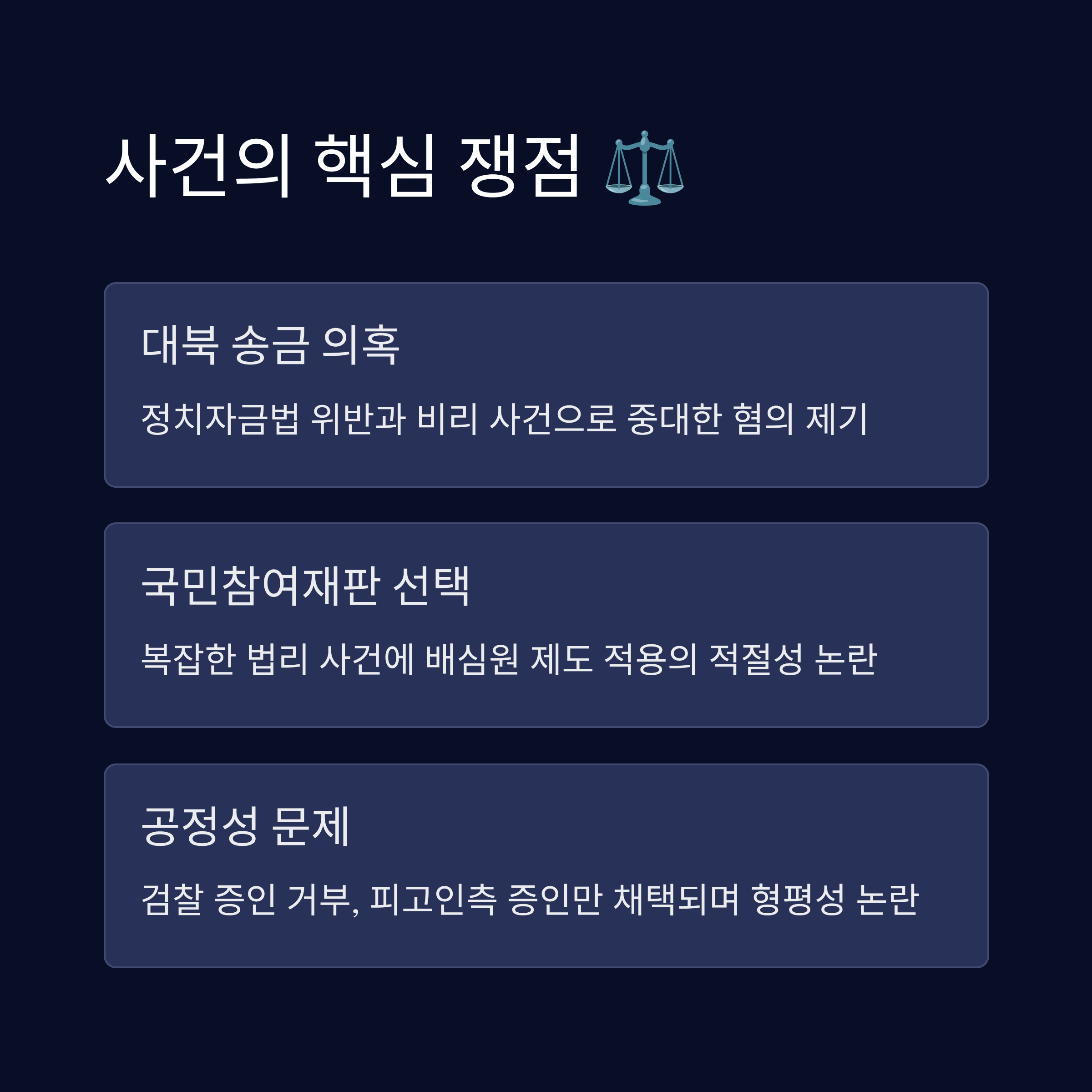 이화영 재판의 국민 참여 재판 결정은 이 사건에서 가장 논란이 되는 부분 중 하나다. 국민 참여 재판은 일반적으로 폭력 사건이나 성범죄 같은 명확한 사건에서 배심원의 감정을 반영하기 위해 사용된다. 그러나 복잡한 법리와 정치적 영향력을 동반한 이 사건에 이를 적용한 것은 사법부의 공정성을 의심하게 만든다. 또한, 검찰의 증인 요청 대부분이 기각된 점은 사건 심리에 있어 균형성을 심각하게 저해할 수 있다는 평가를 받고 있다.