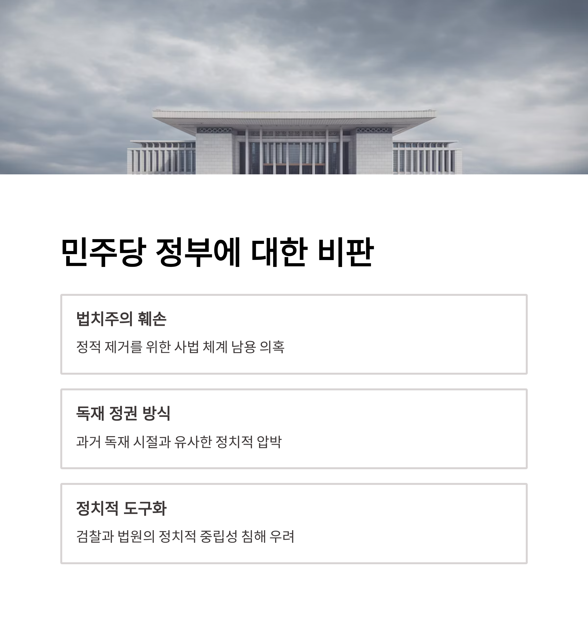 - 민주당 정부와 이재명 대통령 체제에 대한 비판