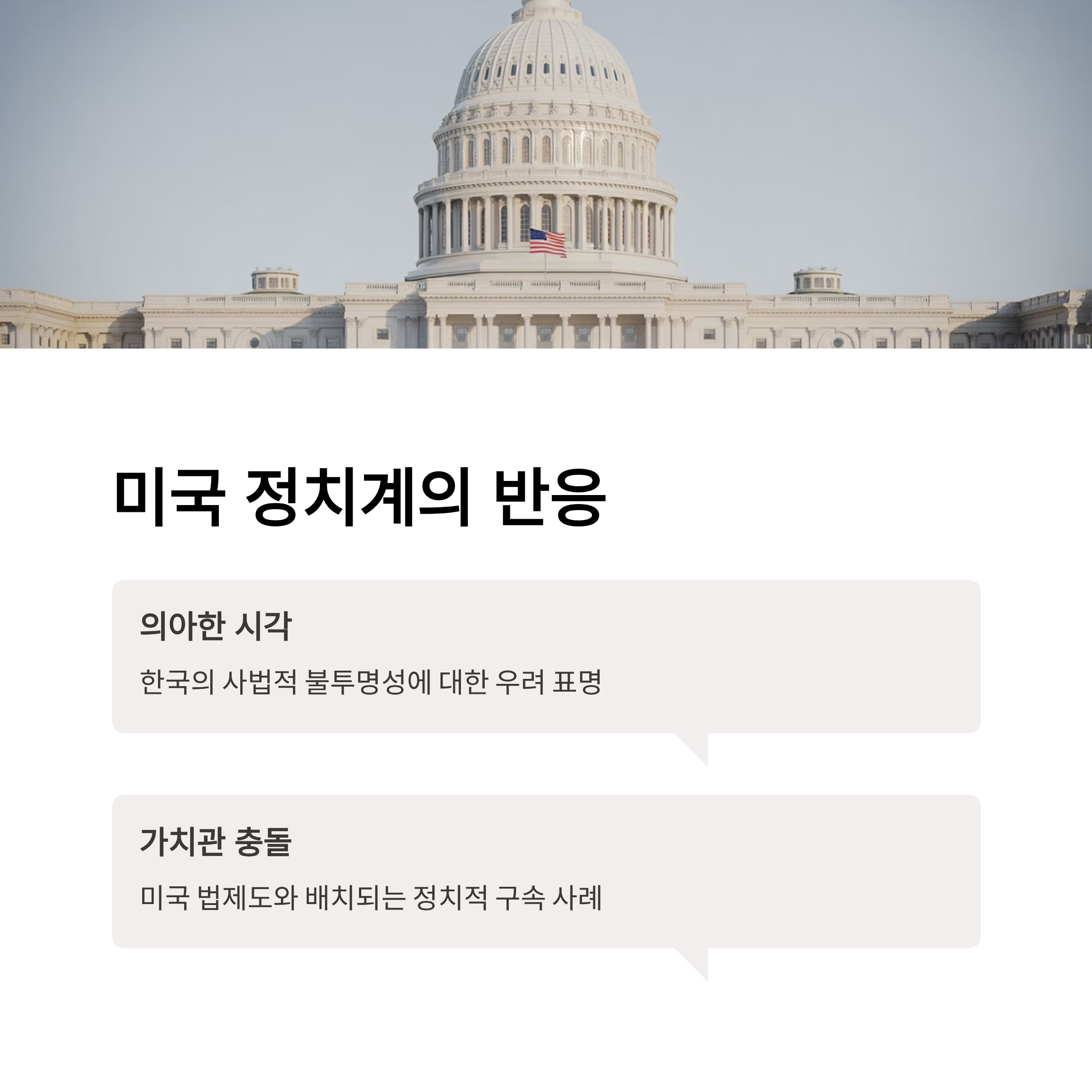 3. 미국 정치인들과 언론은 이 사건이 국제적 신뢰와 대한민국 법치주의상을 훼손할 수 있다고 우려를 표명했습니다.
