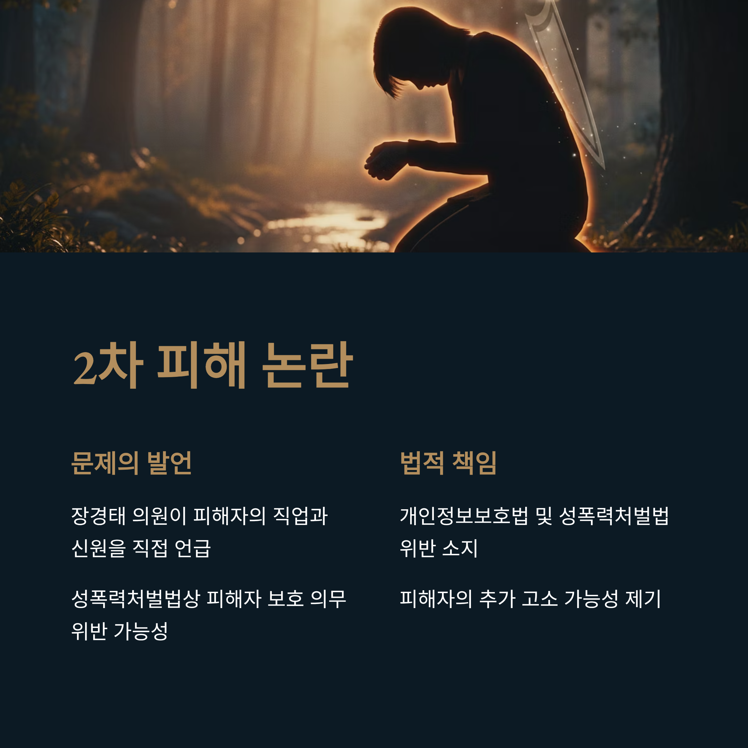 3. 의원이 피해자의 신원을 특정하며 발언한 점이 2차 피해 가능성을 높인 상황입니다.