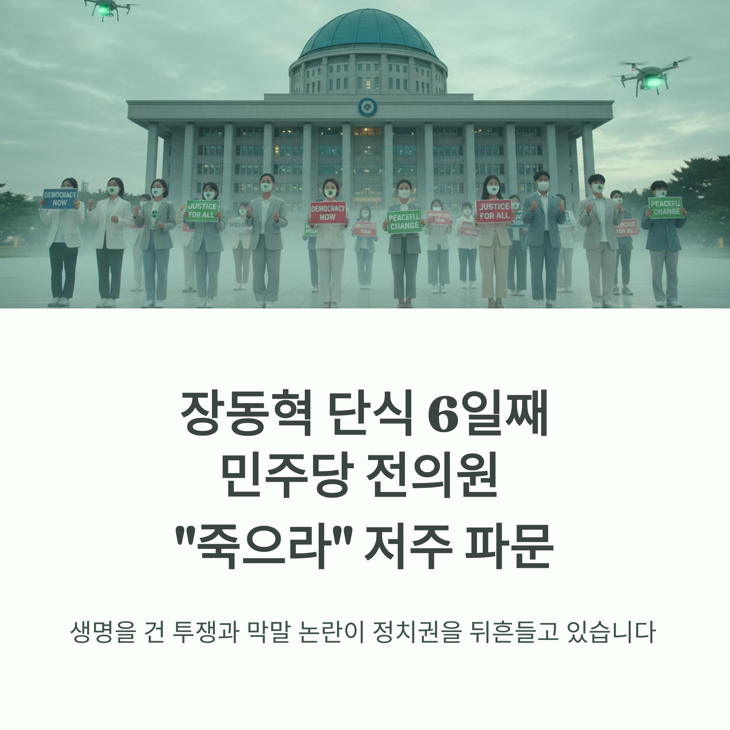 장동혁 단식 6일째, 민주당 전의원 " 죽으라" 저주 파문,