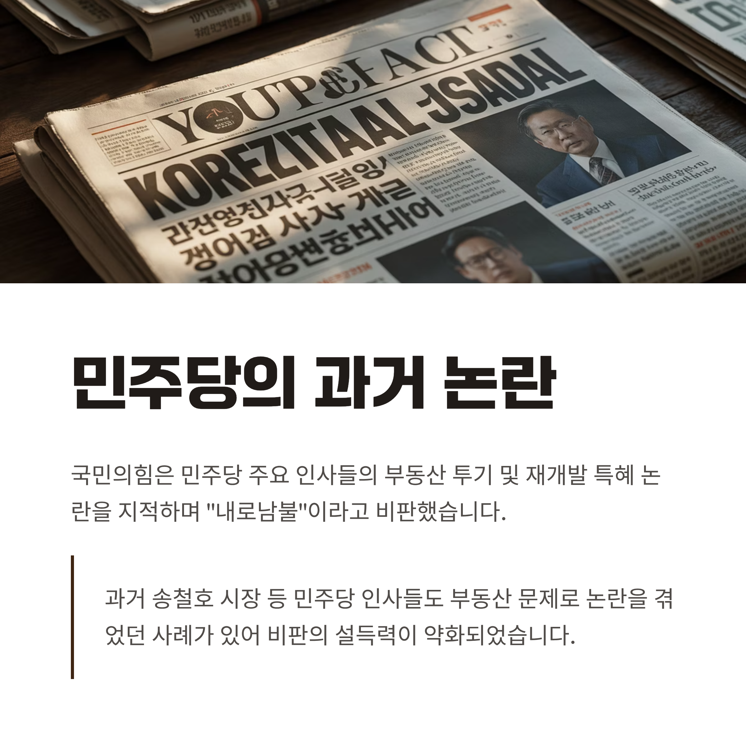 3. 과거 민주당 주요 인사들도 부동산 투기 및 재개발 특혜 논란에 휘말린 사례가 있습니다.