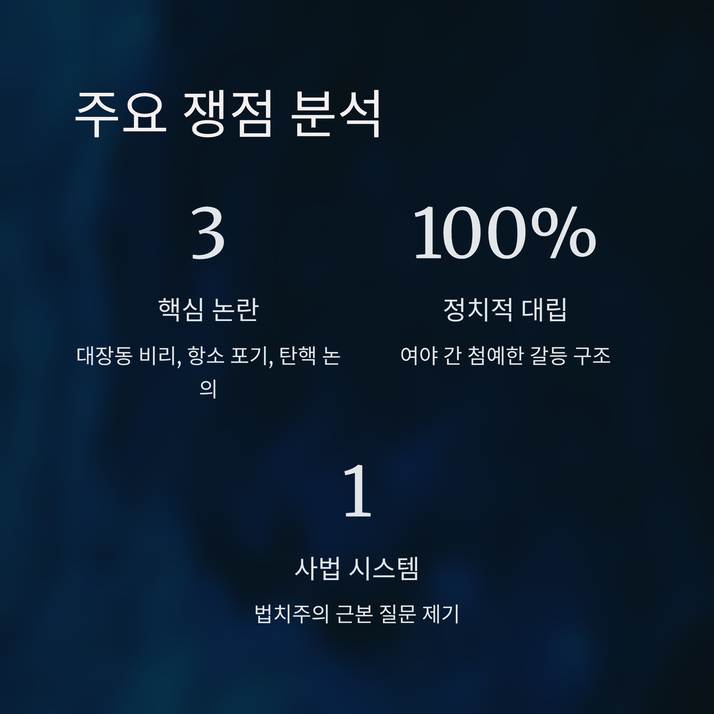 대장동 개발 비리와 관련한 이슈는 정쟁으로 번지며 국민들의 인내심을 시험하고 있습니다. 특히 이재명 대통령의 탄핵 가능성과 검찰의 항소 포기 논란은 대한민국의 사법 체계를 지켜보는 세계의 이목을 끌고 있습니다. 정치적 공방이 거세지고 있지만, 이 과정이 헌법적 가치와 도덕성을 논의하는 중요한 기회로도 작용할 수 있다는 점을 간과해서는 안 됩니다.