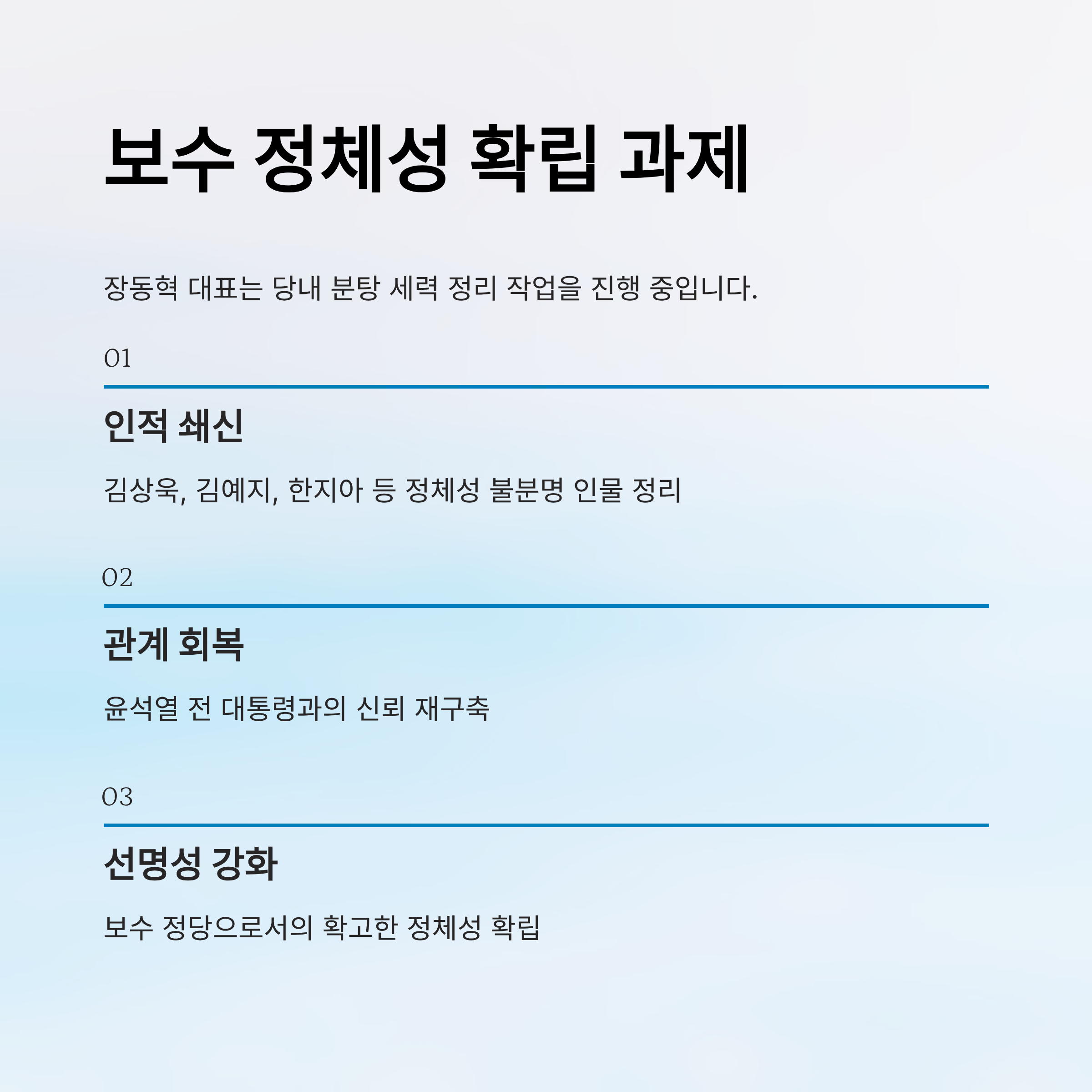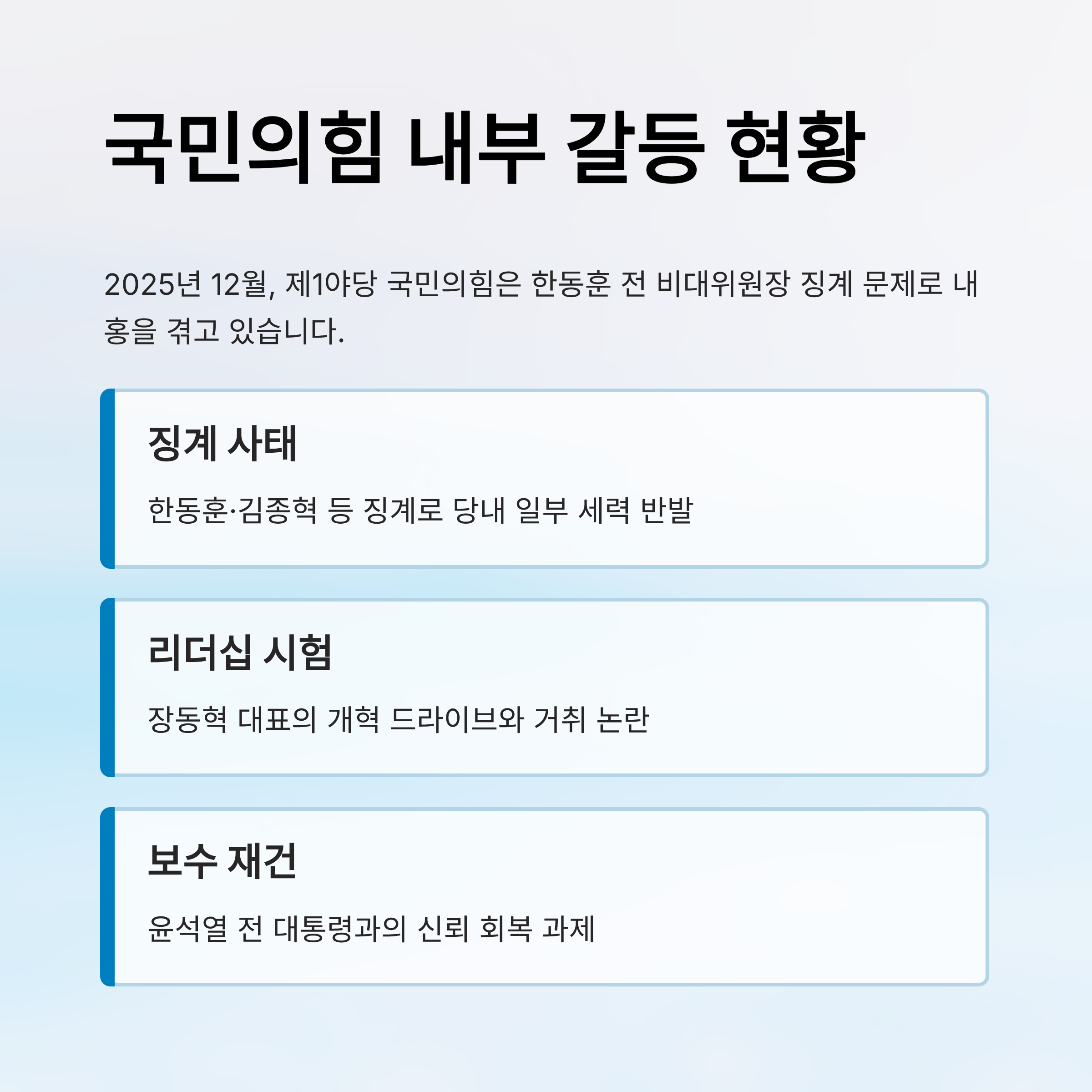 - 3. 분석: 여론조사의 함정과 진실, 계파 갈등의 본질, 보수 재건의 방향성