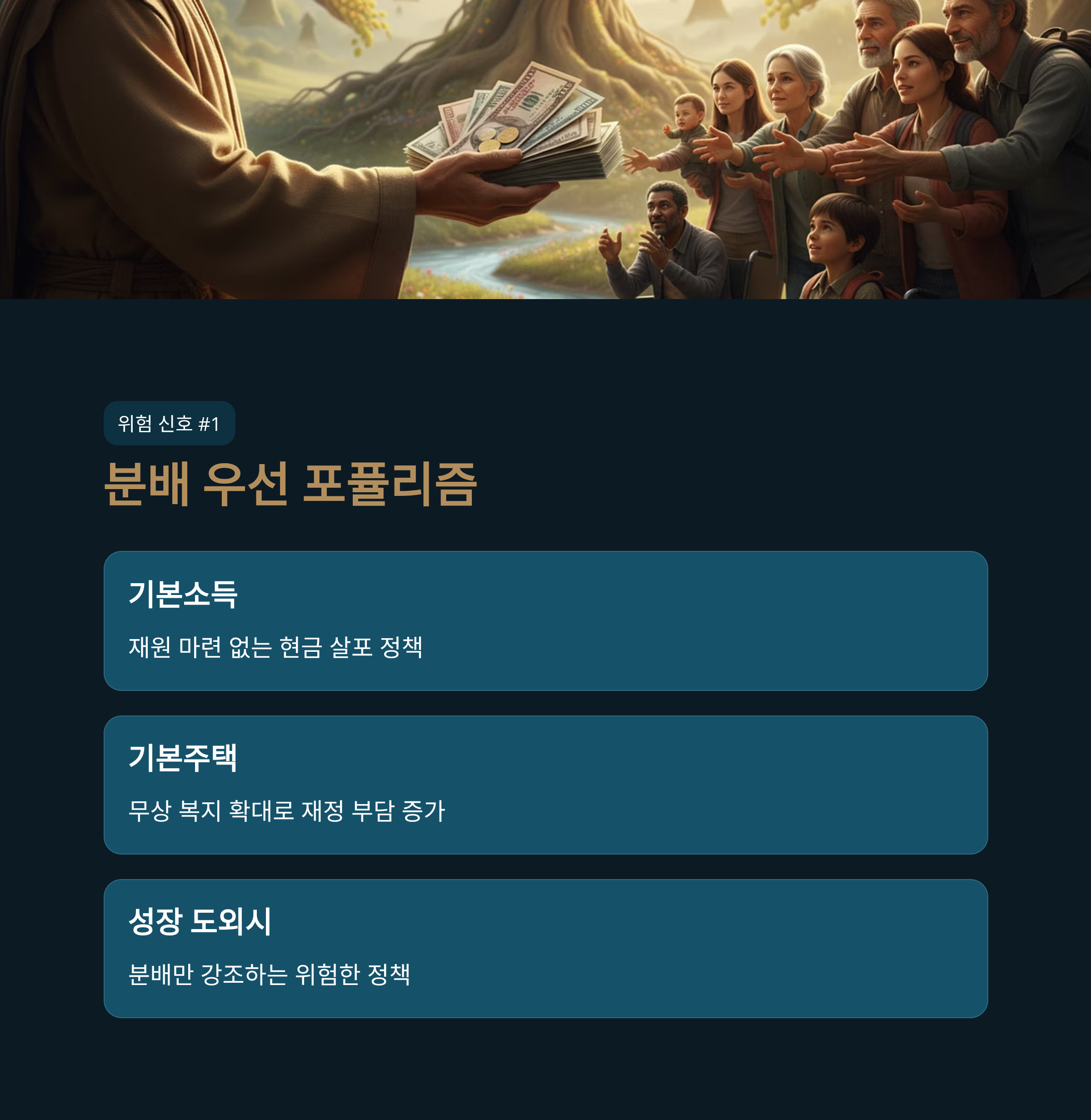 포퓰리즘 복지: '기본소득', '기본주택' 등 분배 중심 정책