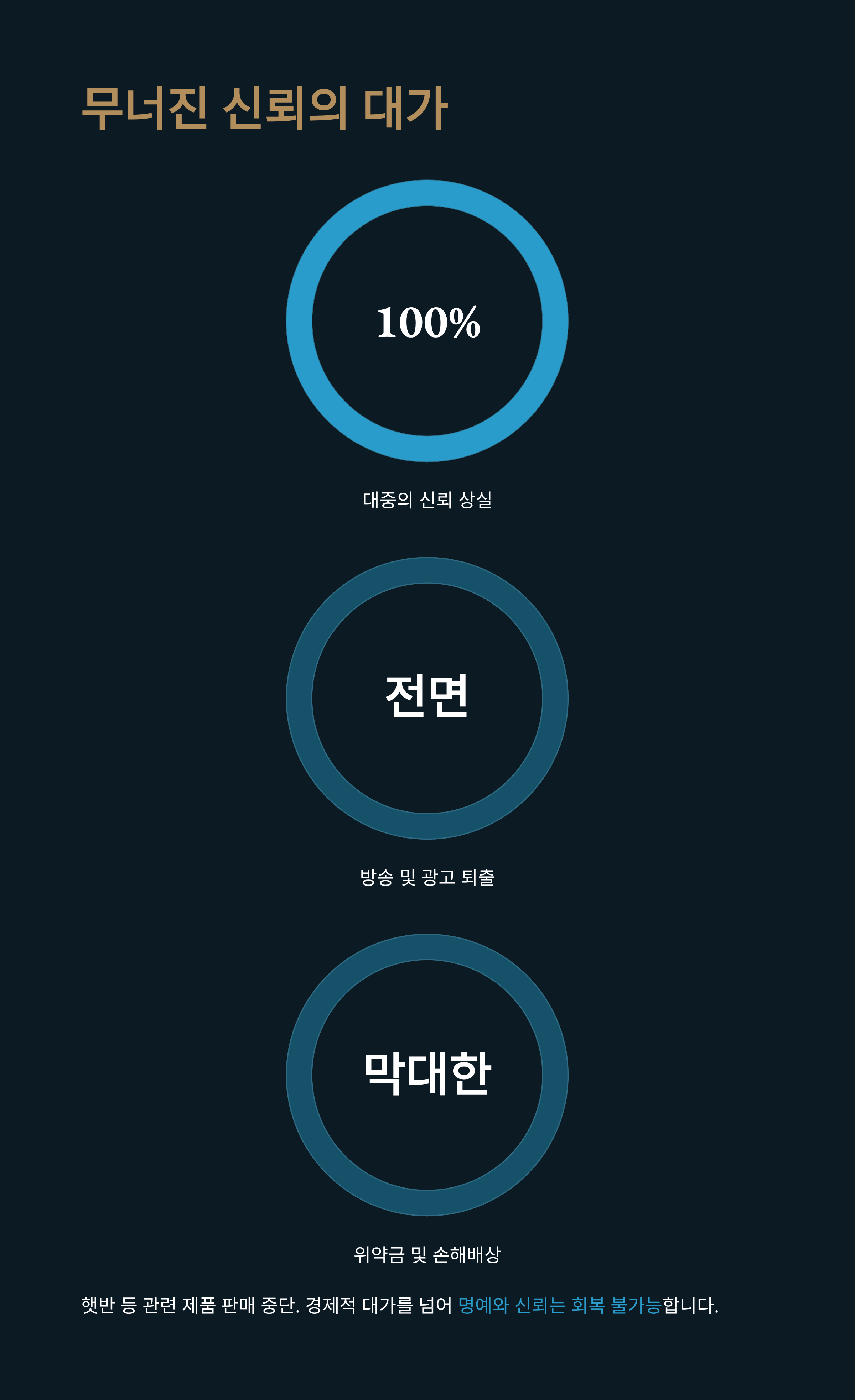 '저속노화'라는 트렌드를 이끌며 건강하고 지적인 이미지를 구축해온 정의원의 추락은 우리 사회에 시사하는 바가 큽니다. 이번 사건은 전문직 종사자나 유명 인플루언서가 보여주는 미디어 속 이미지가 실체와 얼마나 다를 수 있는지 극명하게 보여주었습니다. 햇반 등 관련 제품의 판매 중단과 위약금 문제는 그가 치러야 할 경제적 대가일 뿐, 무너진 신뢰와 명예는 회복하기 어려울 것입니다. 특히 유부남으로서 가정을 두고 외도를 저지른 것도 모자라, 피해 여성을 스토킹범으로 몰아고소한 파렴치한 행태는 법적 처벌과는 별개로 도덕적 지탄을 받아 마땅합니다.