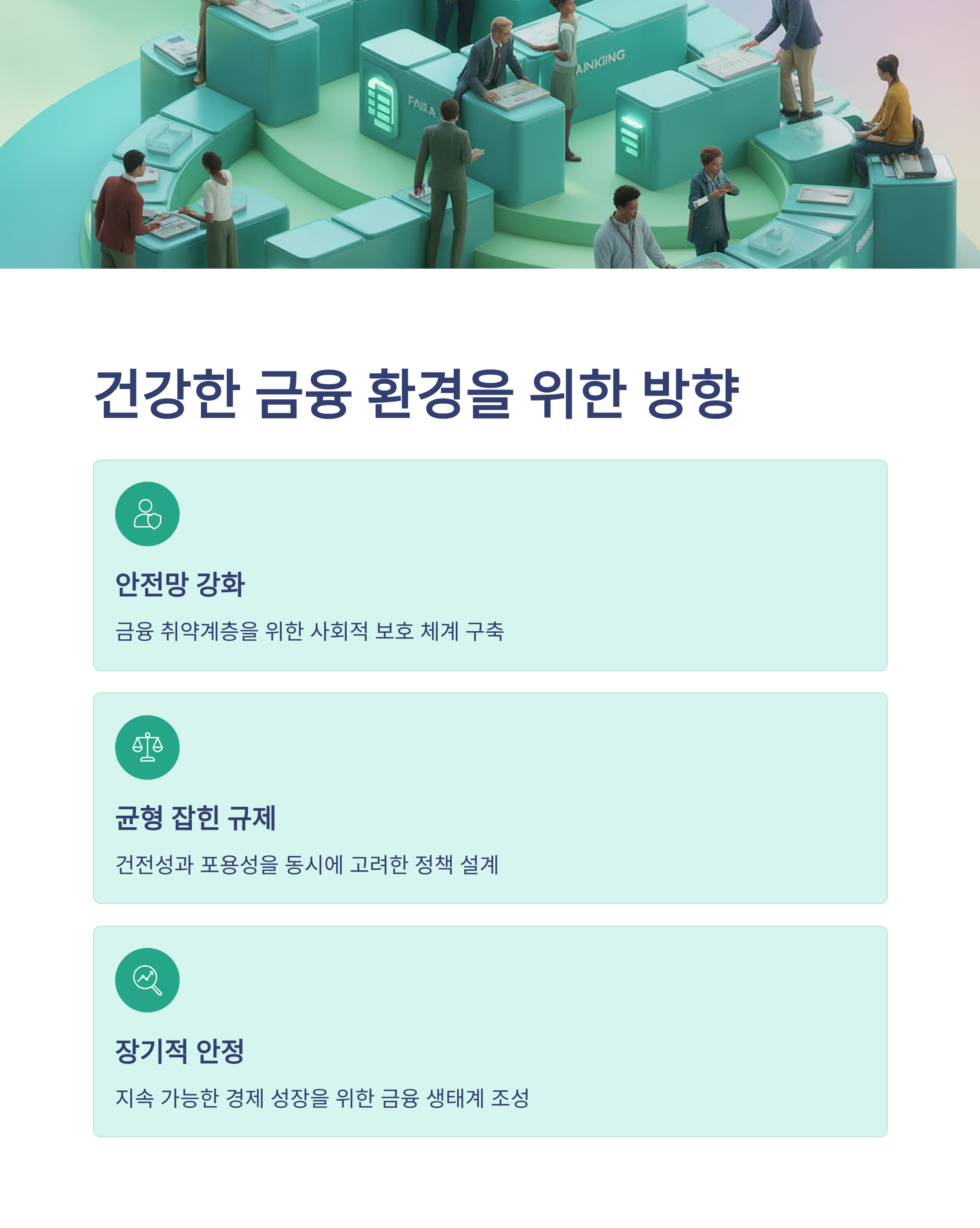 이러한 변화의 배경에는 대출 심사를 보다 엄격하게 만들고 소비자 보호를 강화하려는 정부의 의도가 담겨 있습니다. 다만 이런 조치가 서민들에게는 불균형적인 금융환경을 제공하거나, 더 높은 금리와 위험에 노출되는 부작용을 초래하는 것이 아닌가 하는 비판도 일고 있습니다. 본 글에서는 이재명 정부의 금융정책이 저신용자 대출에 미친 영향과 현실적인 문제들을 분석하고, 동시에 대안을 살펴보겠습니다.