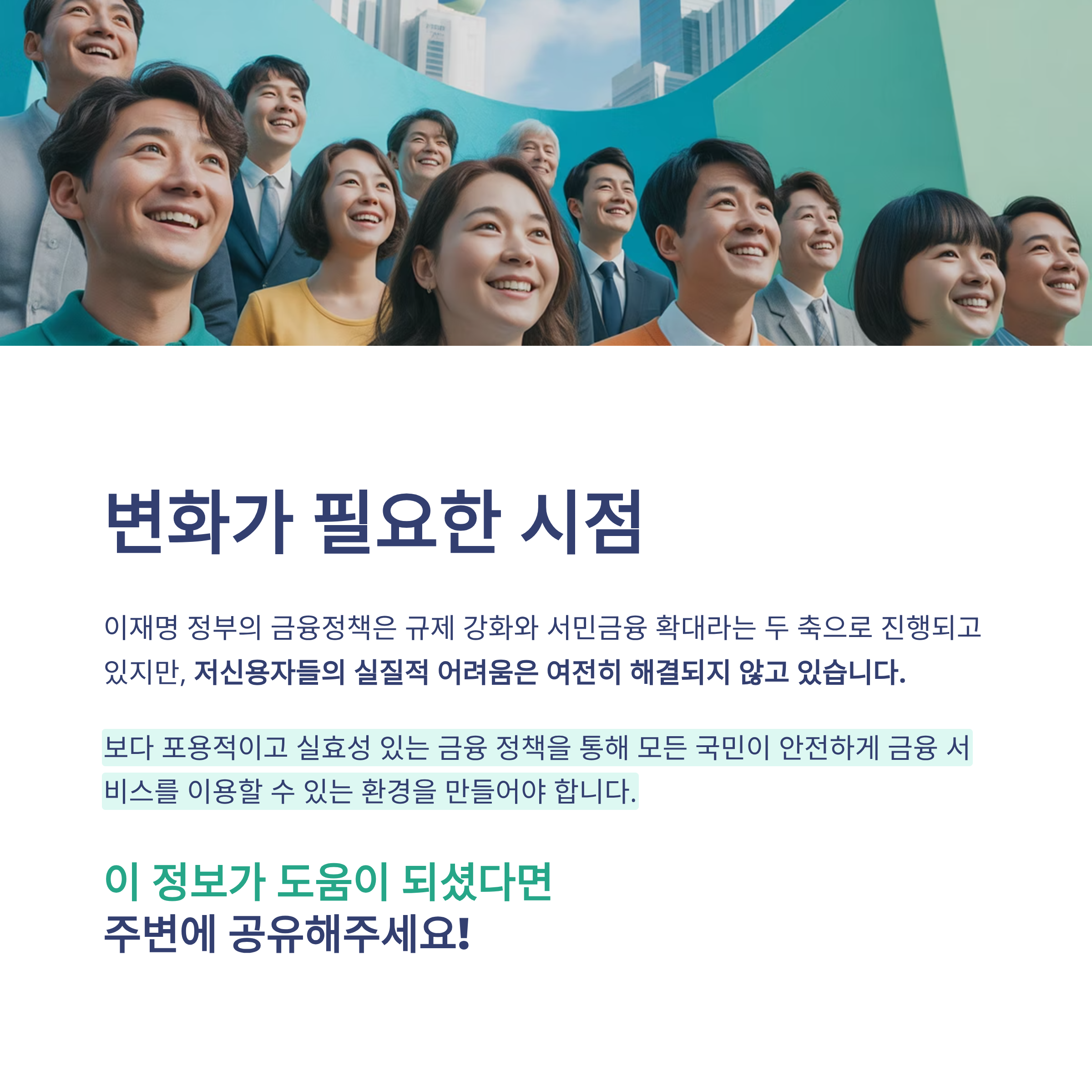 관련 태그: 저신용자 대출, 이재명 정부 금융정책, 대출 규제, 정책서민금융, 신용대출 DSR