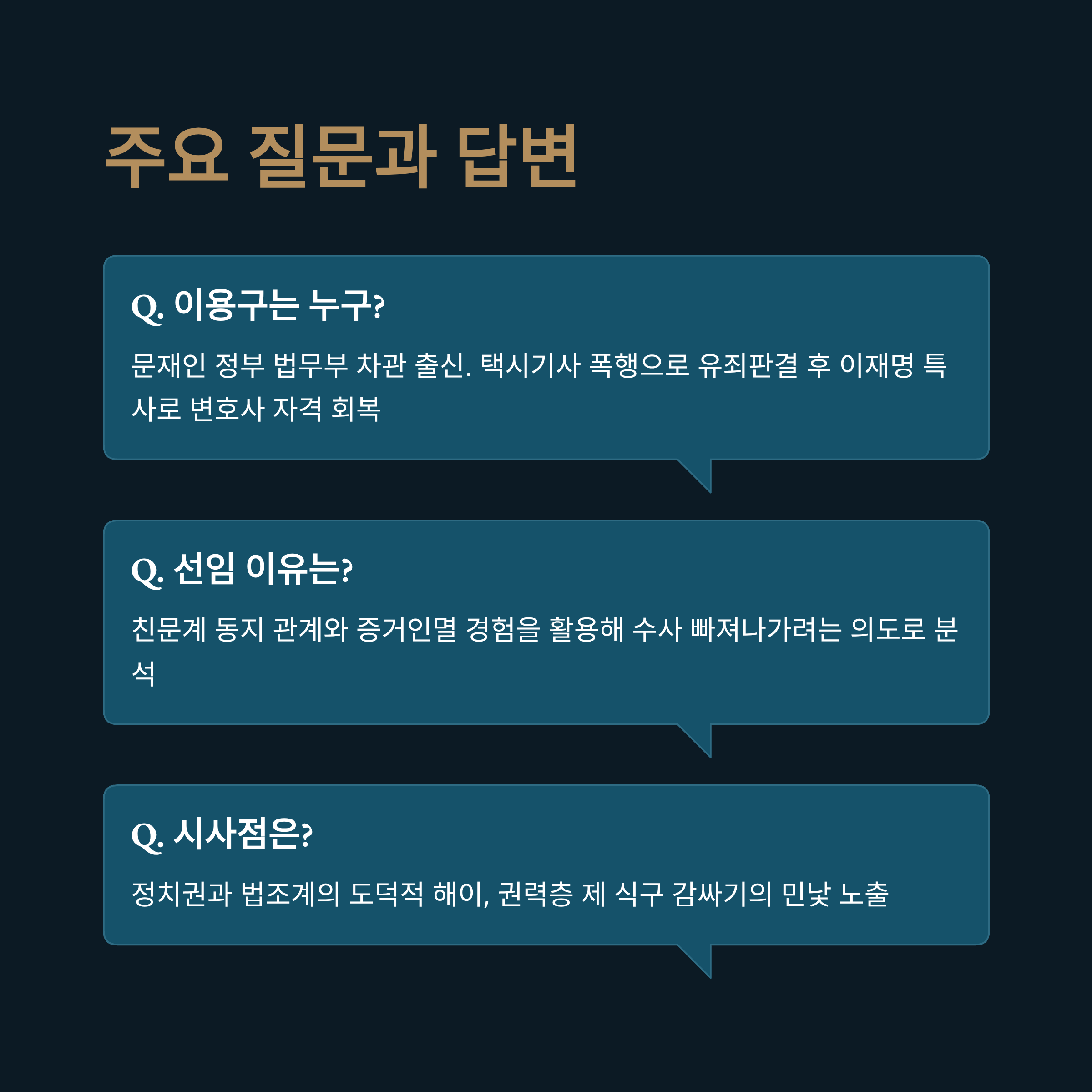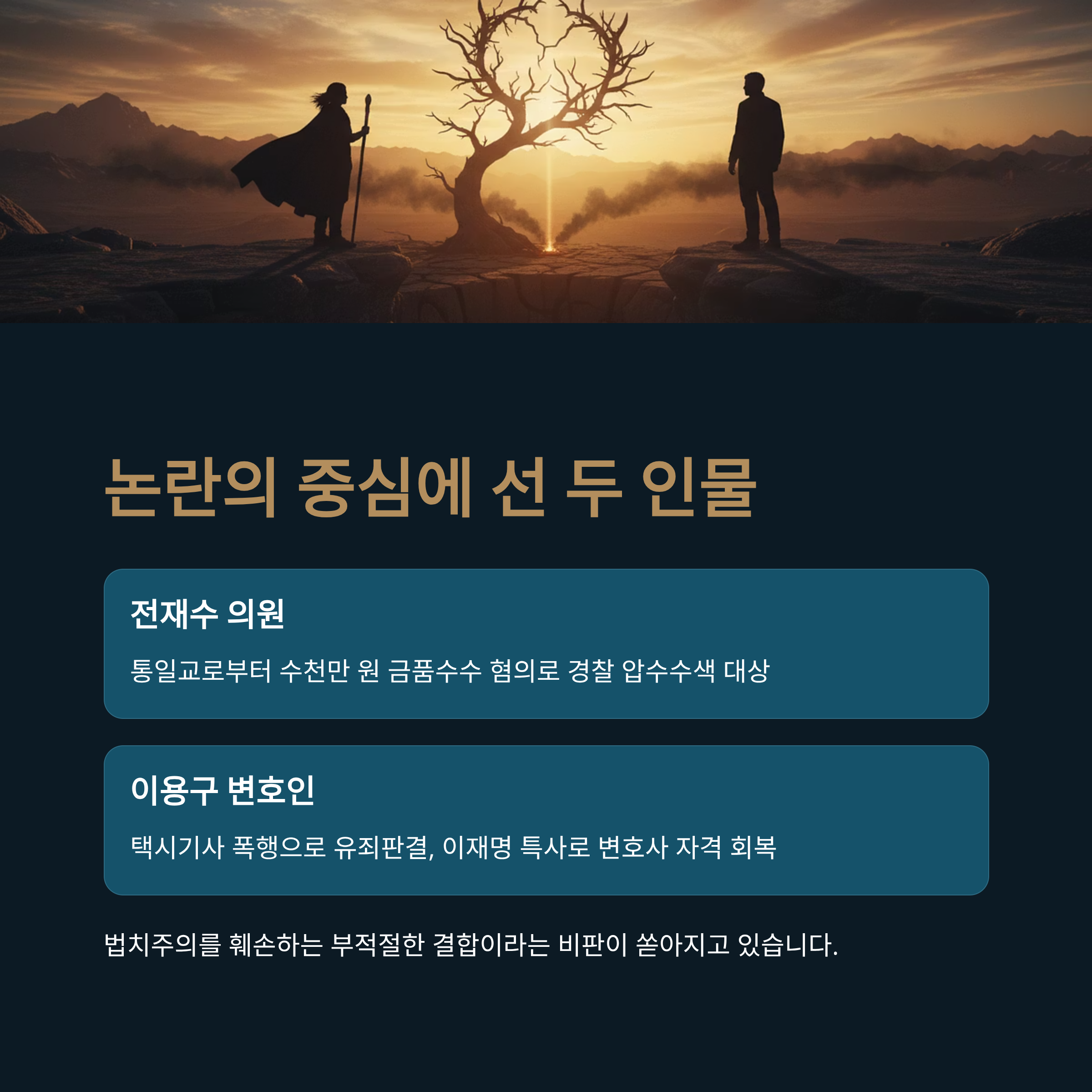 - 핵심요약: 전재수 의원과 이용구 변호인의 부적절한 결합