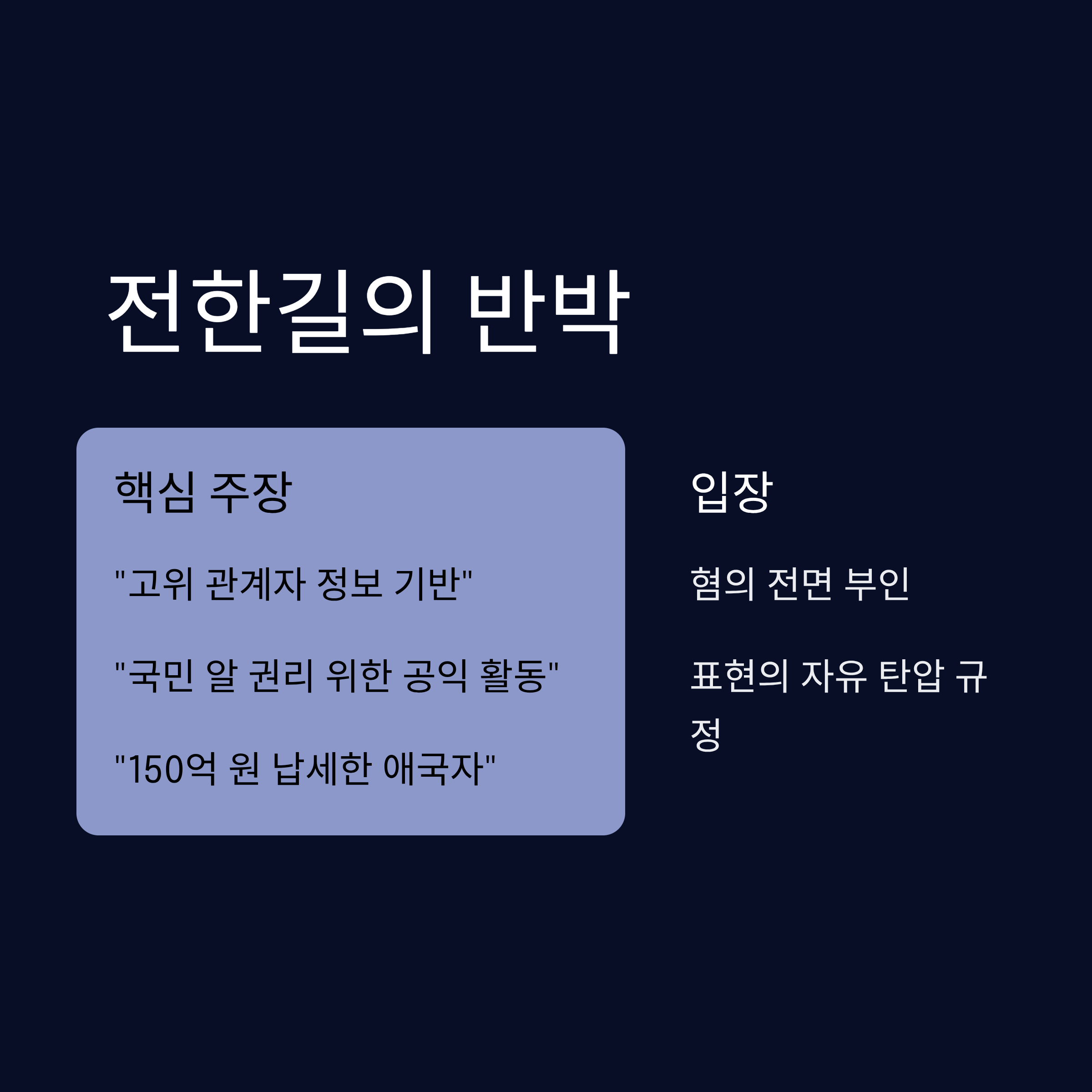 - 2. 핵심요약: 이재명 대통령 명예훼손 혐의 및 전한길의 반박 포인트 정리