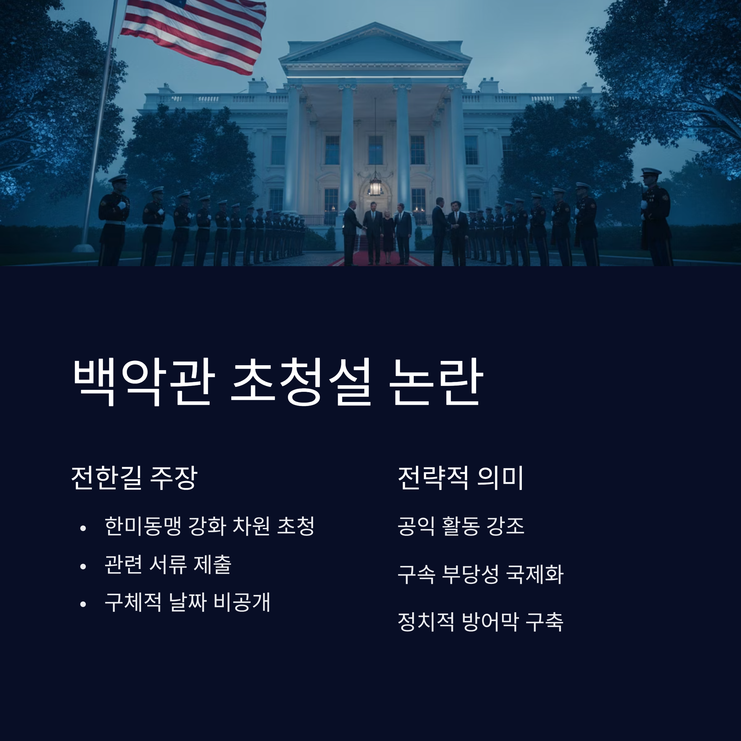 | Q3. 백악관 초청설은 무슨 내용이며 수사에 영향을 미칠까요? |