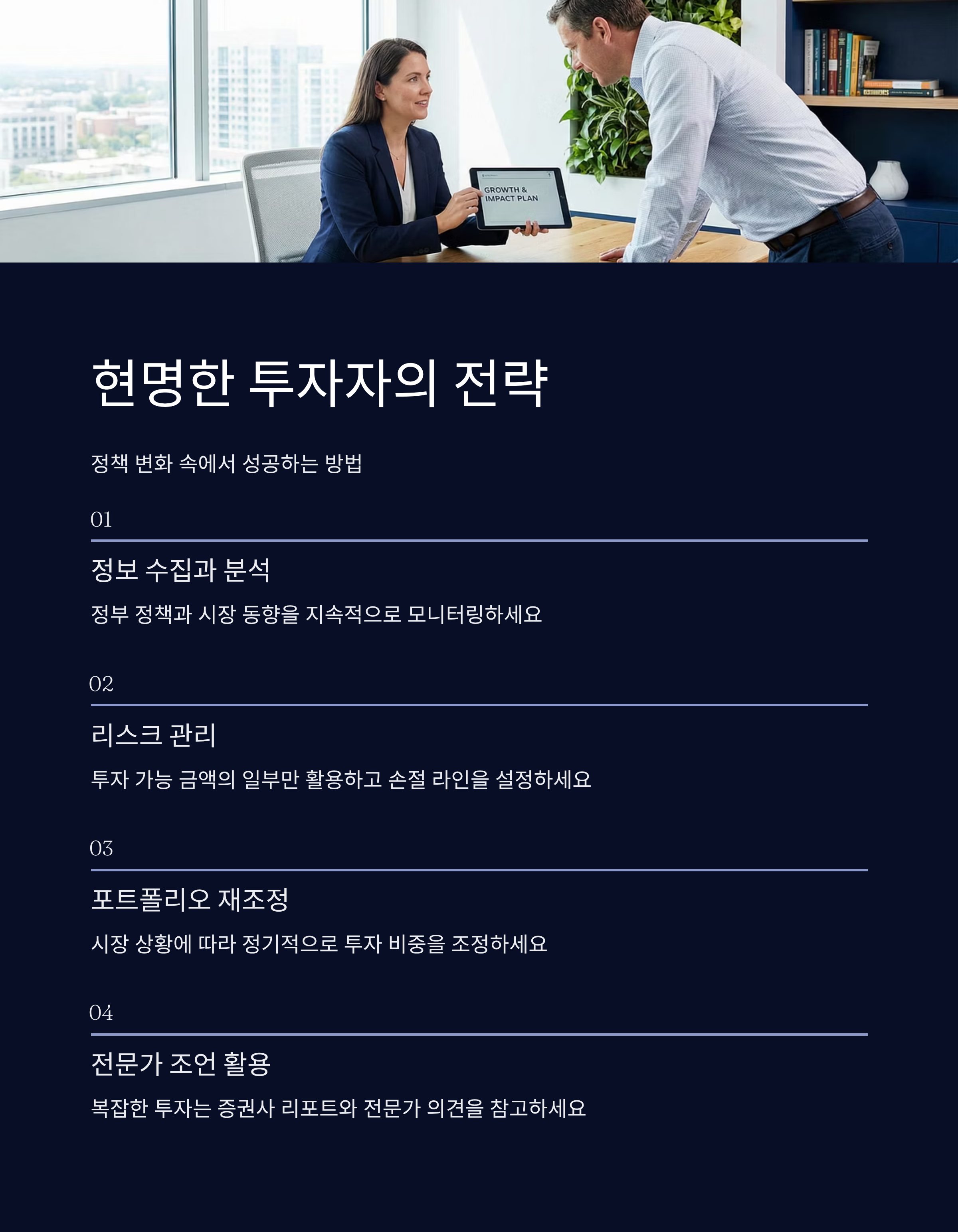 | Q. 정책 리스크를 최소화하기 위한 투자 전략은 무엇인가요? |