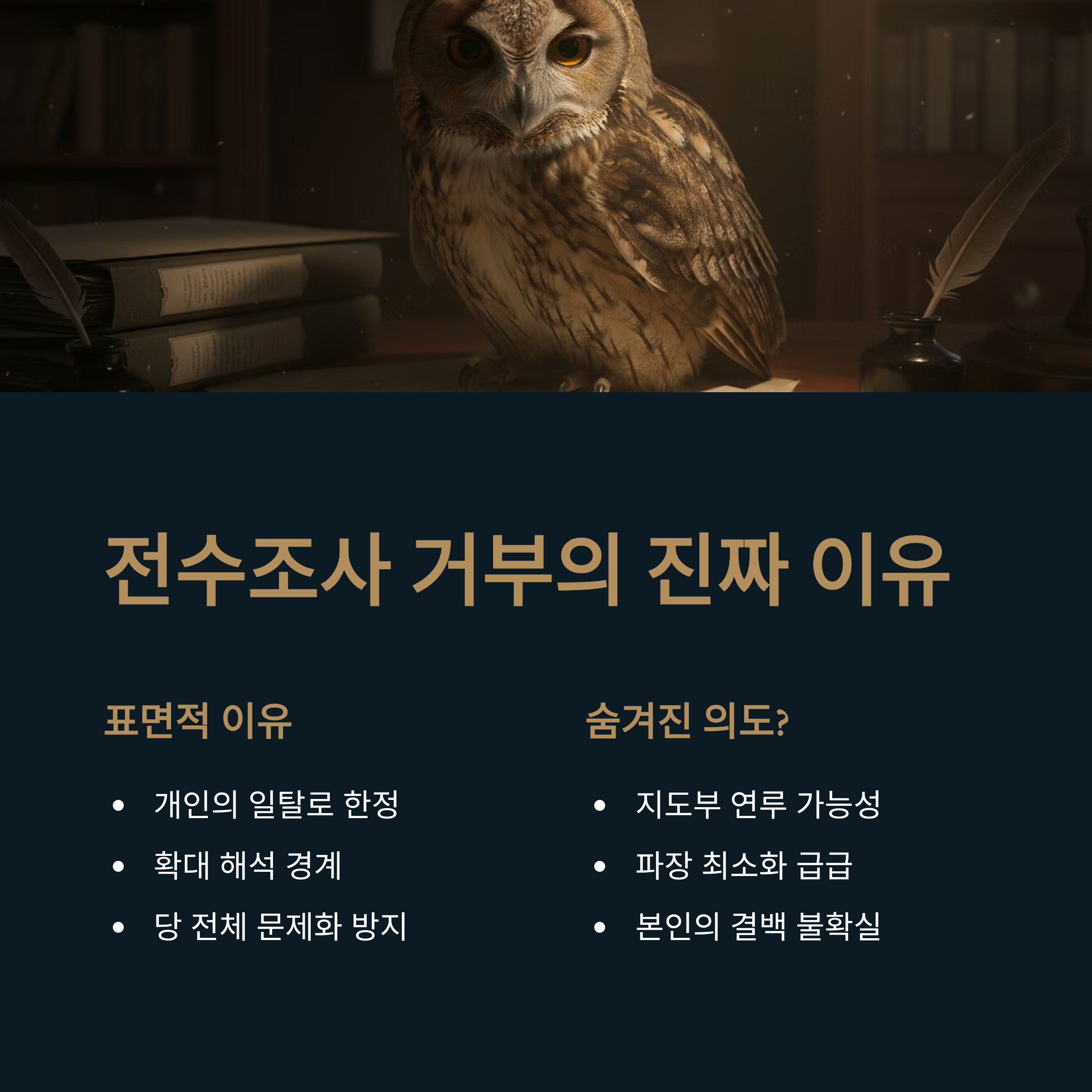 - 결론: 지도자의 침묵이 초래할 신뢰의 붕괴와 전수조사의 당위성 제언.