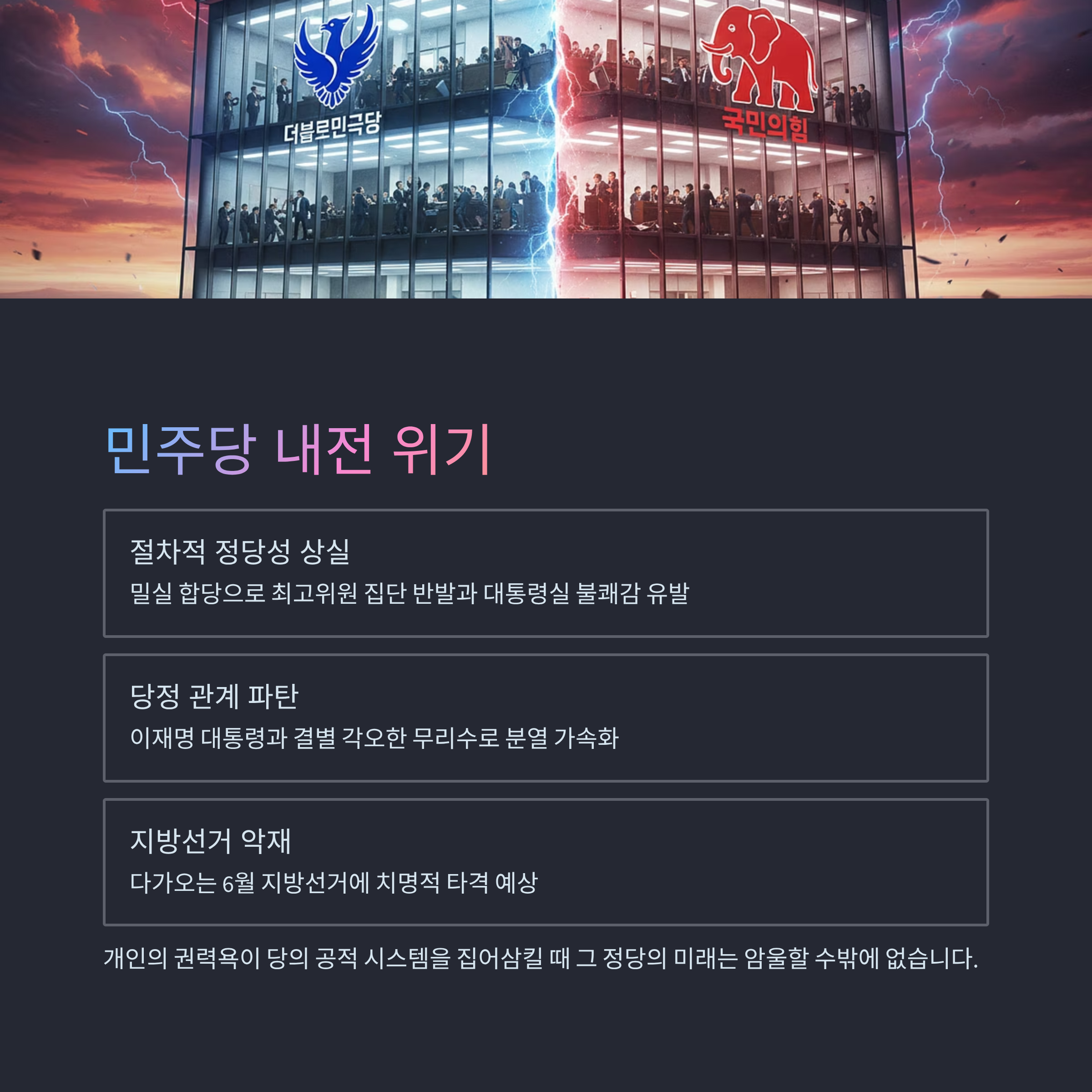 - 4. 결론: 민주당 내전 위기와 리더십의 본질적 한계