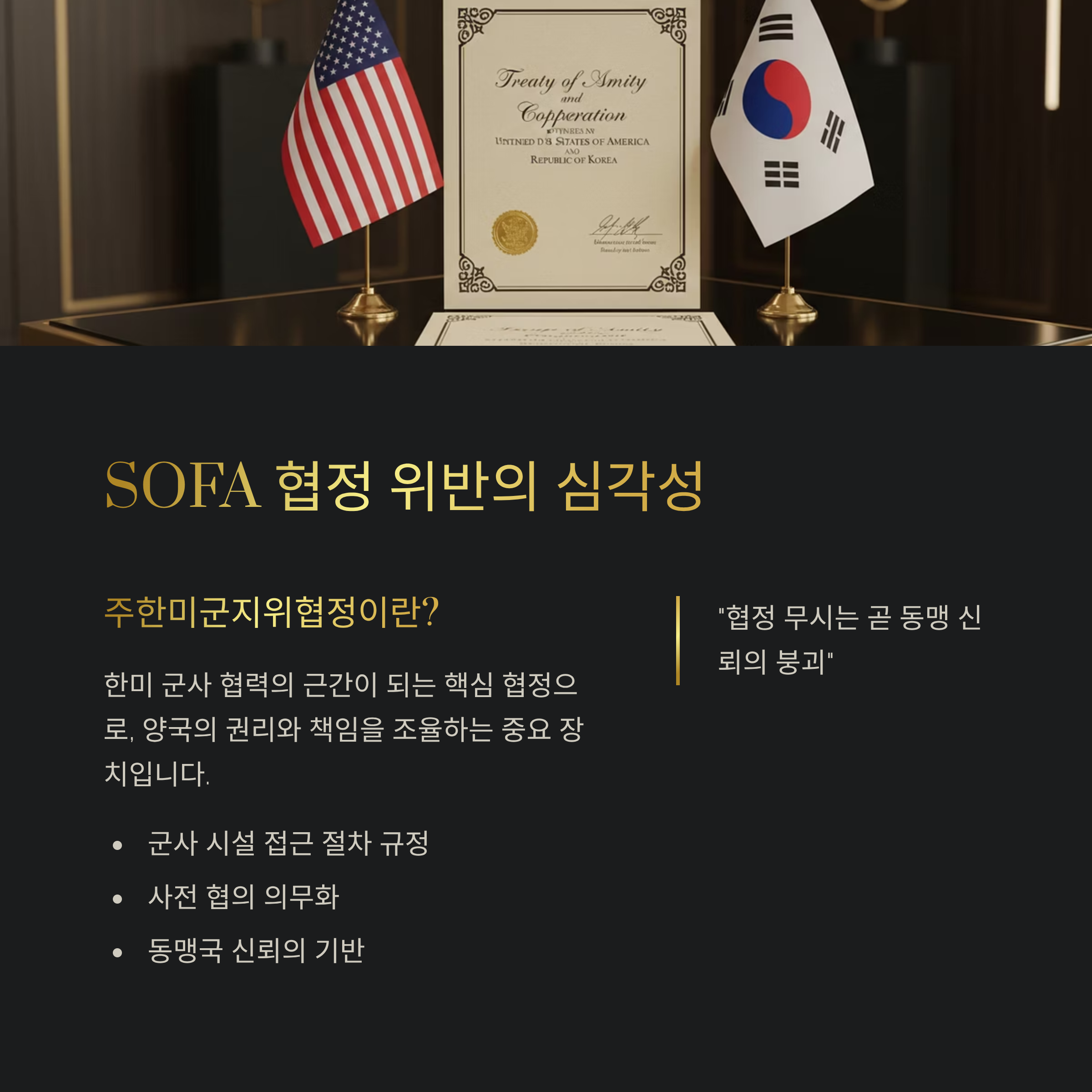국가안보, SOFA협정, 특검 압수수색, 방위비 협상, 한미동맹, 윤석열 정부, 주한미군, 외교적 파장, 오산기지