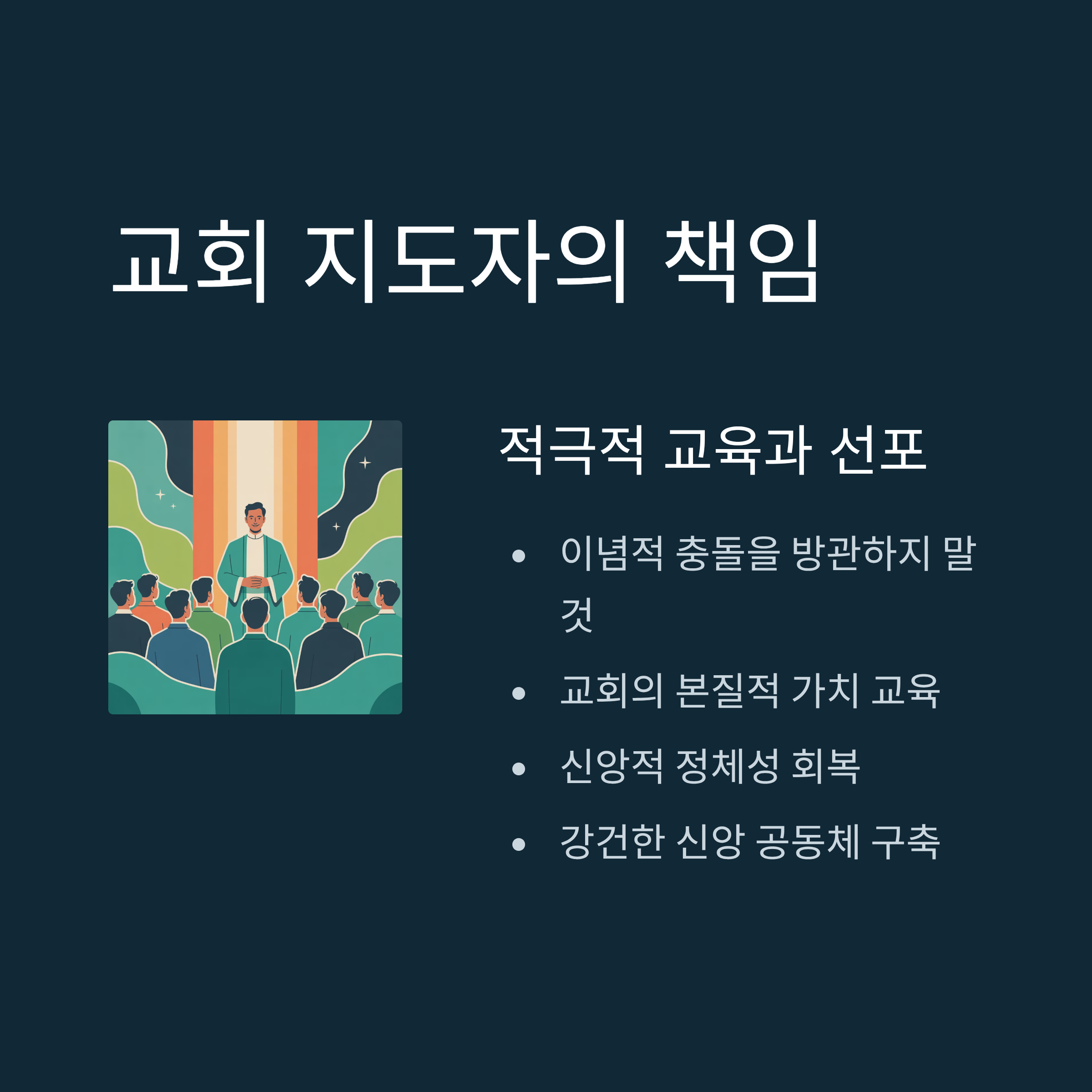 '좌파 크리스천과 정치, 신앙의 경계'라는 주제는 단순한 정치적 논쟁이 아니라, 신앙적 정체성과 교회의 본질적인 역할을 되찾는 과정에서 반드시 짚고 넘어가야 할 중요한 문제입니다. 한국 교회는 급변하는 사회 환경 속에서도 성경적 가치와 기준을 유지해야 하며, 동시에 세속적 신념으로부터 독립성을 지켜야 합니다. 특히 '이재명 재림 예수'와 같은 논란은 그 경계가 얼마나 분명히 드러나야 하는지를 명확히 보여줍니다. 크리스천들이 이념과 신앙 사이에서 균형을 유지하기 위해서는 하나님 중심의 입장을 견지하고 세속적 요구에 흔들리지 않는 단단한 신앙적 기반을 다지는 것이 필수적입니다. 더불어 교회의 지도자들은 이러한 이념적 충돌을 방관하지 말고, 교회의 본질적 가치를 적극적으로 교육하고 선포하여, 각 개인의 신앙적 정체성을 회복시키고 강건하게 할 책임이 있습니다.