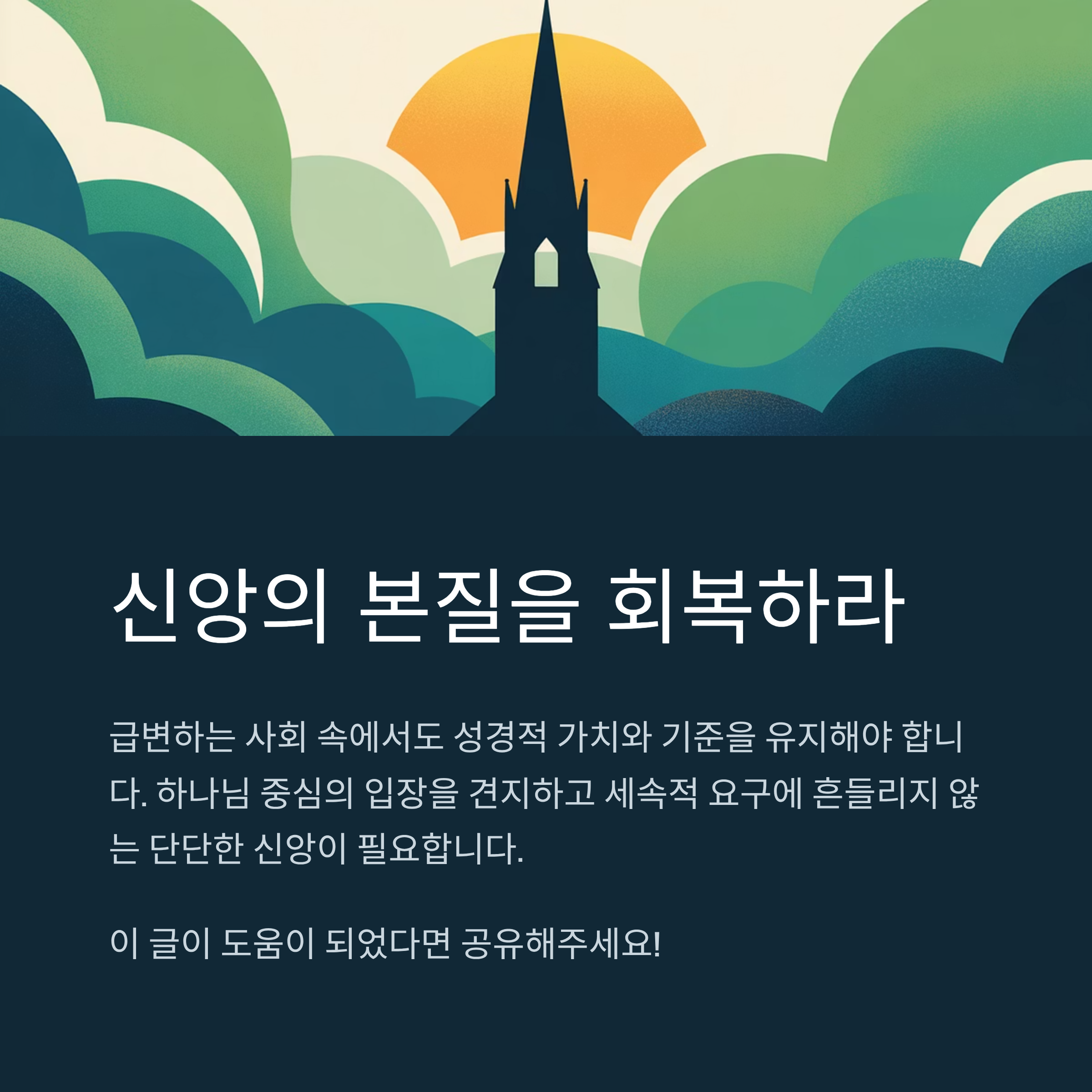 기독교 신앙의 본질은 하나님 중심의 가치에 있으며, 인간 또는 이념의 상징화를 경계해야 합니다.