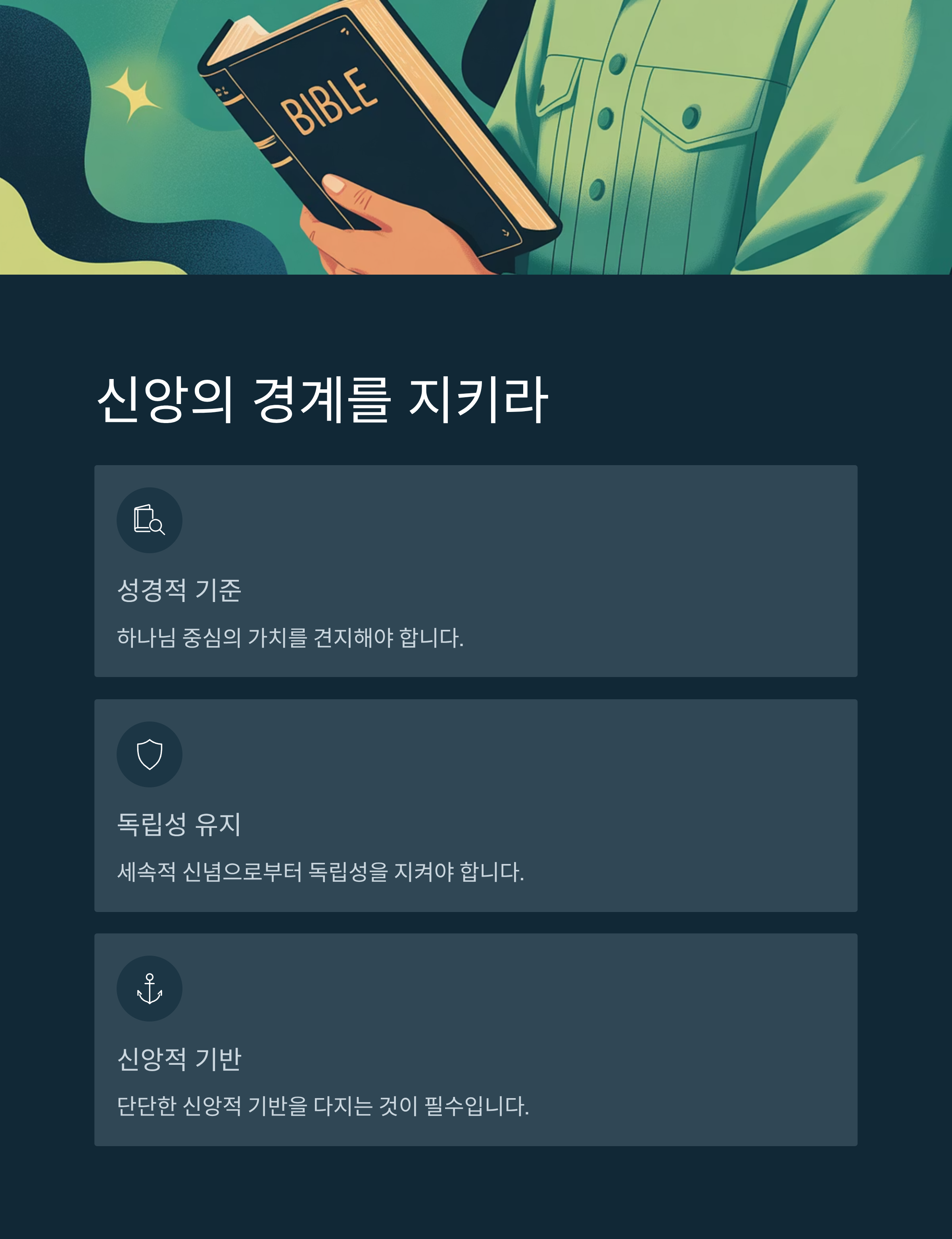 신앙과 정치의 조화는 철저히 성경적 기준 아래 이루어져야 합니다.