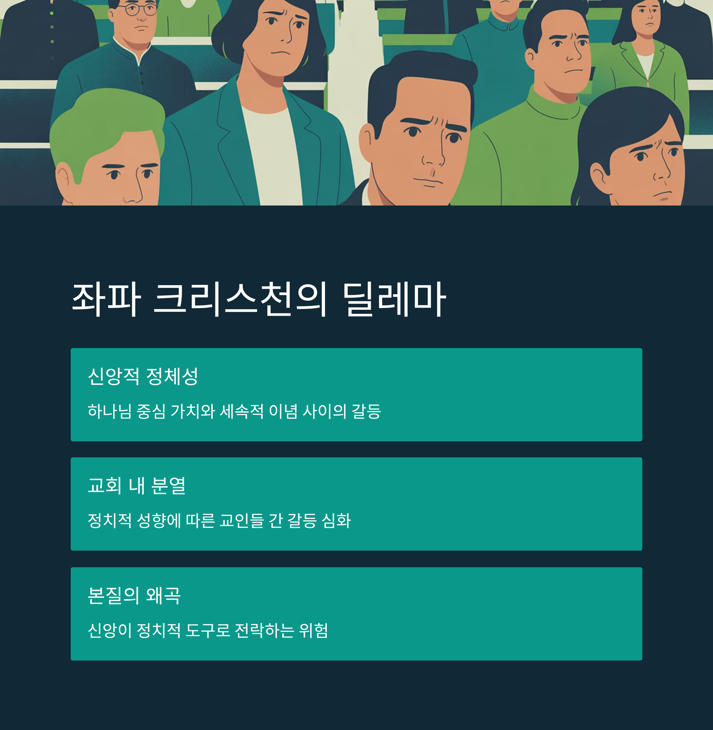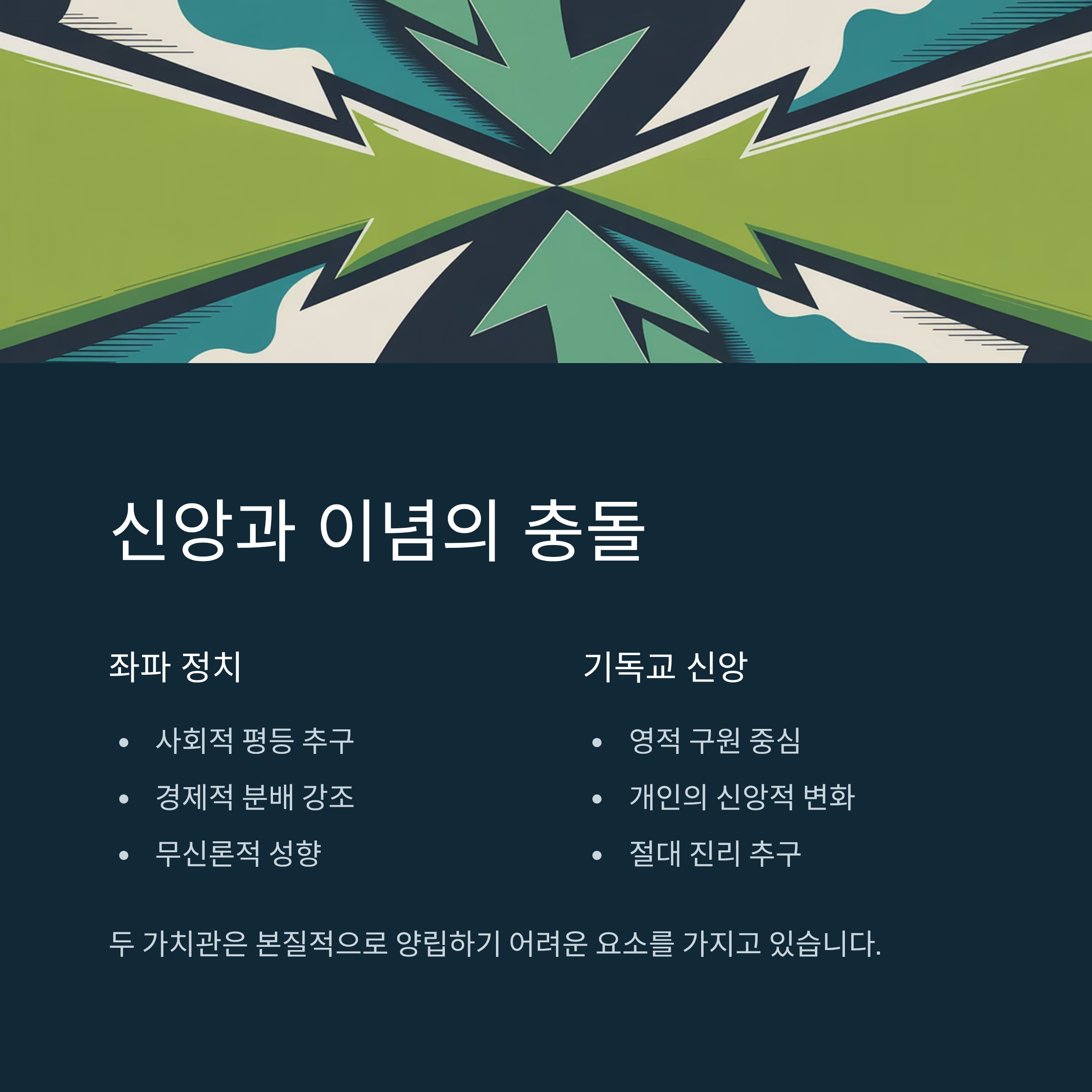 좌파 크리스천의 신념적 딜레마는 기독교적 가치와 충돌을 일으킬 가능성이 큽니다.
