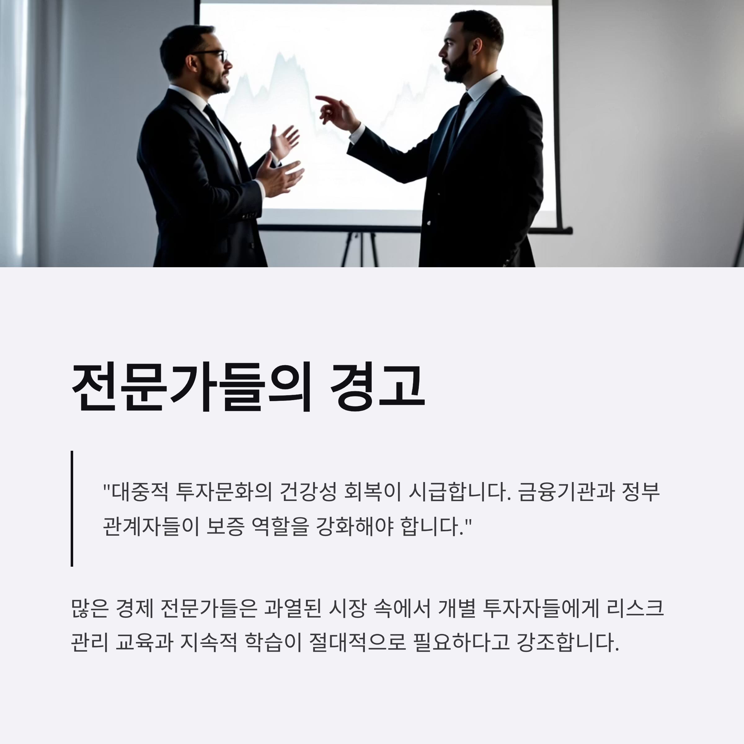 최근 주식 투자 열풍 속에서 '빚투'는 대부분의 개미 투자자들이 경험적으로 크게 경계해야 할 과제로 부상하고 있다. 특히 코로나19 팬데믹 이후 금융시장이 회복되는 과정에서 과도한 신용 투자로 인해 소비자 신용점수 하락, 채무 불이행 등의 사례가 다수 발견되고 있다. 하지만 금융위 고위 관리자의 발언은 이 같은 현실적인 위험 요소를 간과하며 오히려 '빚을 통한 투자 확대’ 논리를 지지하듯 해 해석되고 있다. 이를 두고 많은 경제 전문가들은 ‘대중적 투자문화의 건강성’ 회복과 동시에 금융기관과 정부 관계자들이 보증 역할을 강화해야 한다고 주장하고 있다. 실제로 과열된 코스피 시장 속에서 개별 투자자들에게는 리스크 관리에 대한 이해와 지속적 학습이 절대적으로 요구된다.