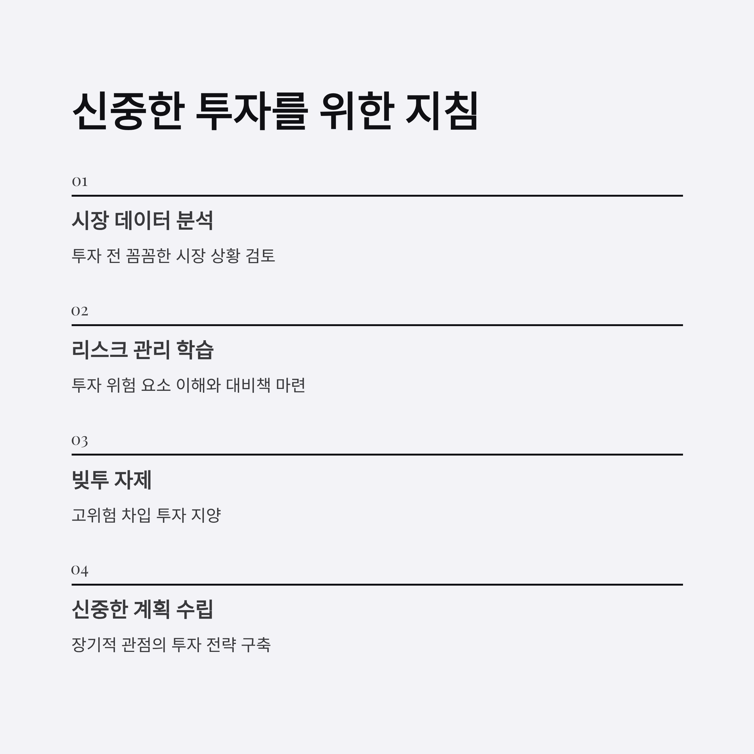 | A. 빚투는 잠재적인 수익을 늘릴 수 있지만, 시장 변동성이 있을 경우 예상치 못한 손실로 인해 채무 부담이 커질 위험이 있습니다. 특히, 작은 손실도 복구가 어려운 구조를 초래할 수 있습니다. |