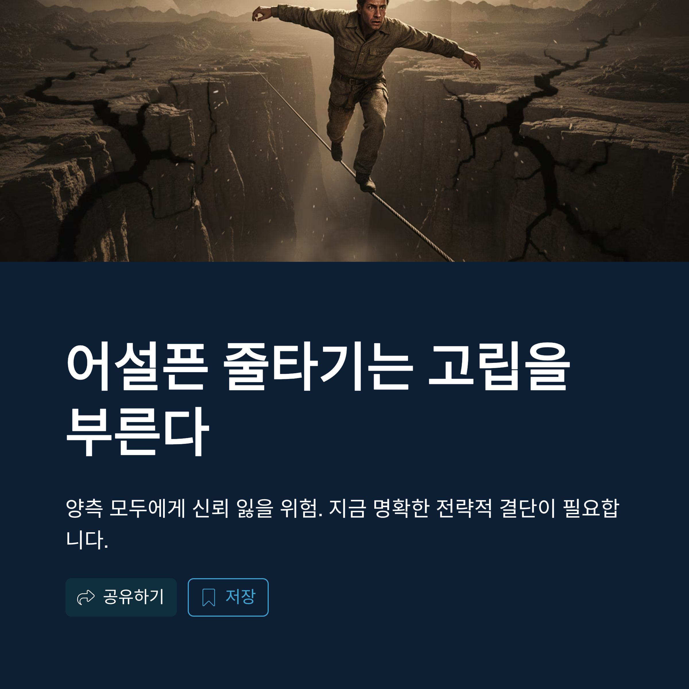 반대로 한국이 미국의 대중국 견제에 적극 동참하거나 주한미군의 서해 활동을 용인할 경우, 중국은 한국을 미국의 전초기지로 간주하여 '제2의 사드 보복' 이상의 강력한 경제적·군사적 압박을 가할 것입니다. 이재명 정부는 미중 사이에서 전략적 모호성을 유지하려 하지만, 이번 사건은 양쪽 모두에게 버림받을 수 있는 최악의 시나리오가 현실화되고 있음을 보여줍니다.