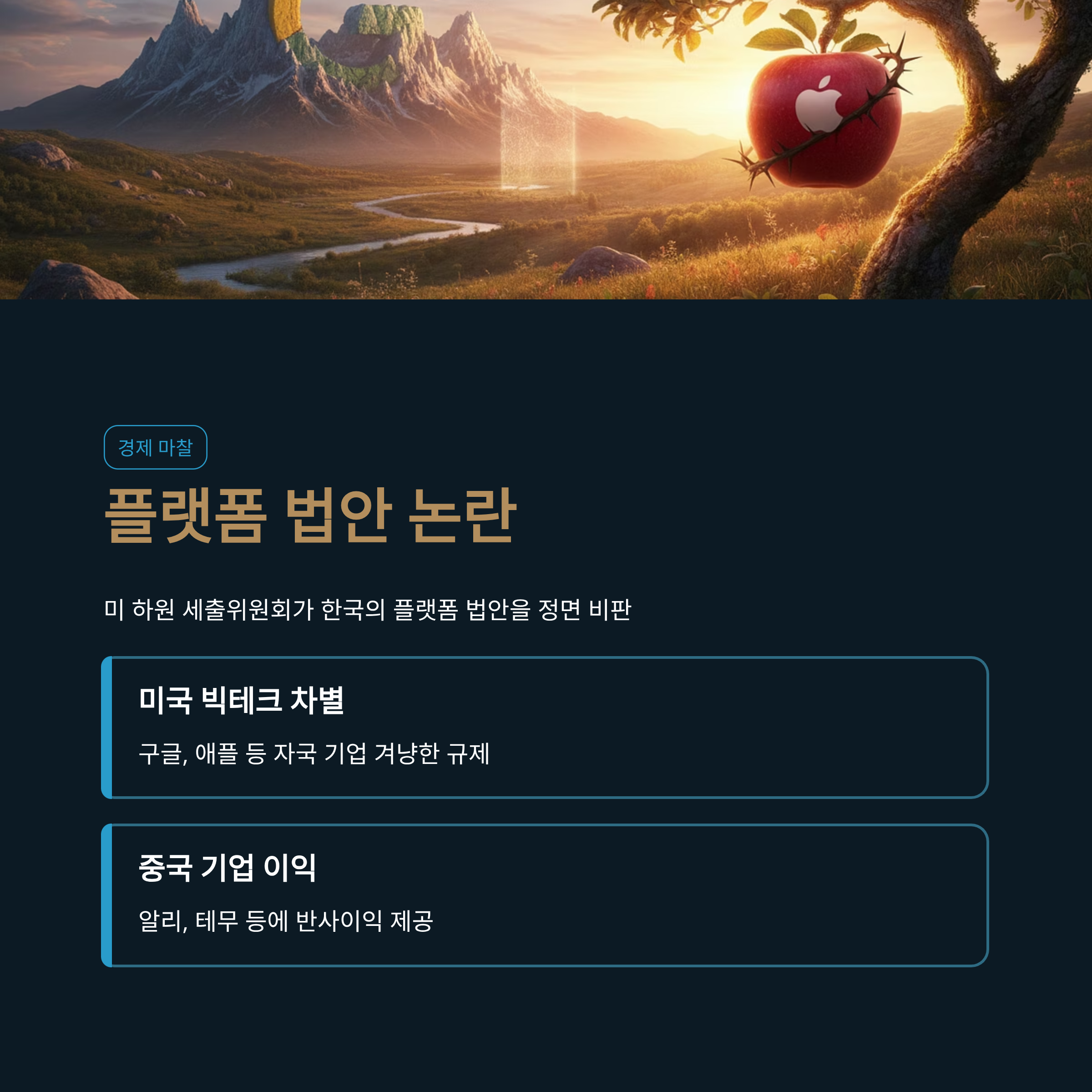 동시에, 미 하원은 한국의 '플랫폼 법안'이 구글 등 미국 빅테크를 차별하고 중국 기업에 이익을 준다고 공식 비판했습니다.
