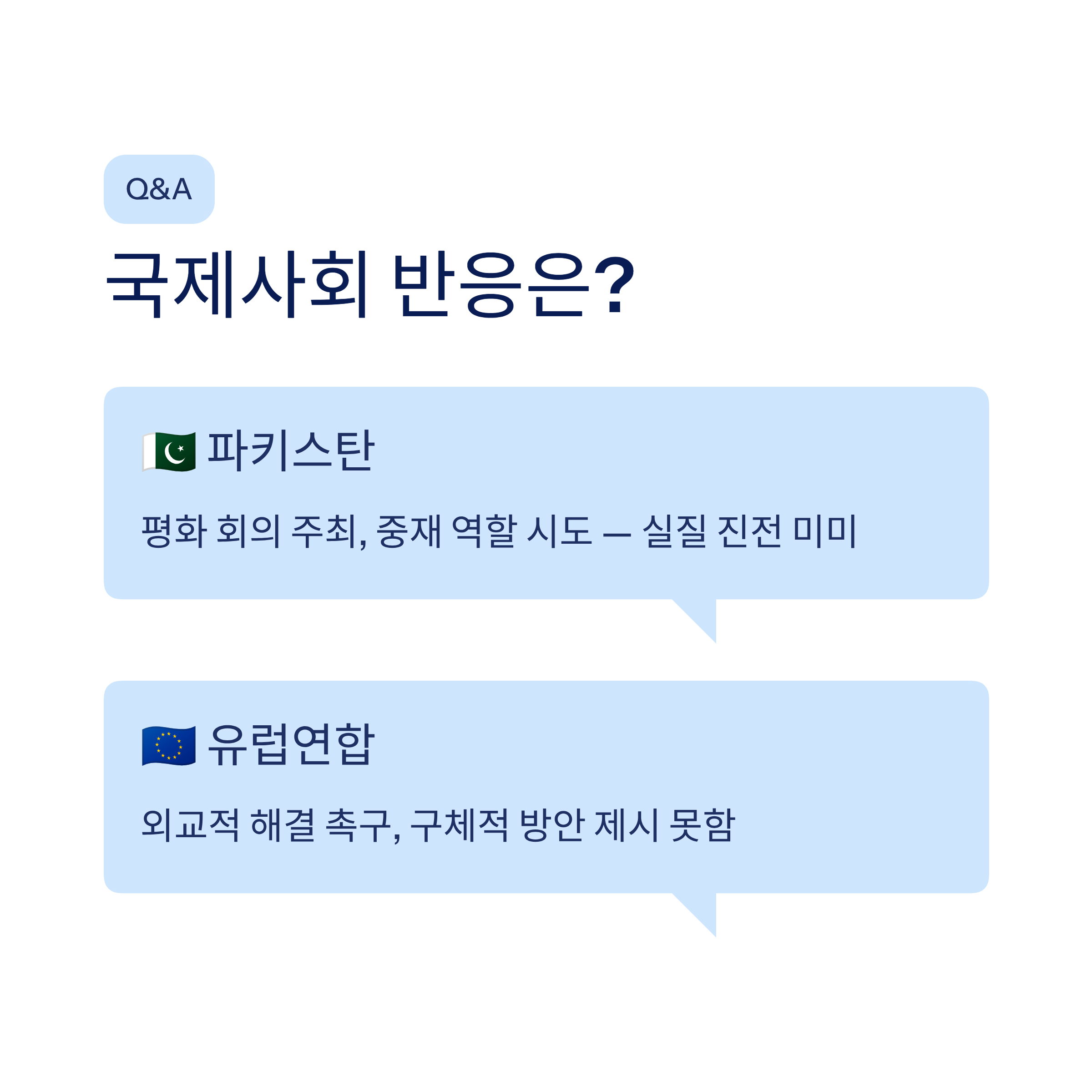 | Q. 국제사회는 이 상황에 어떻게 반응하고 있나요? |