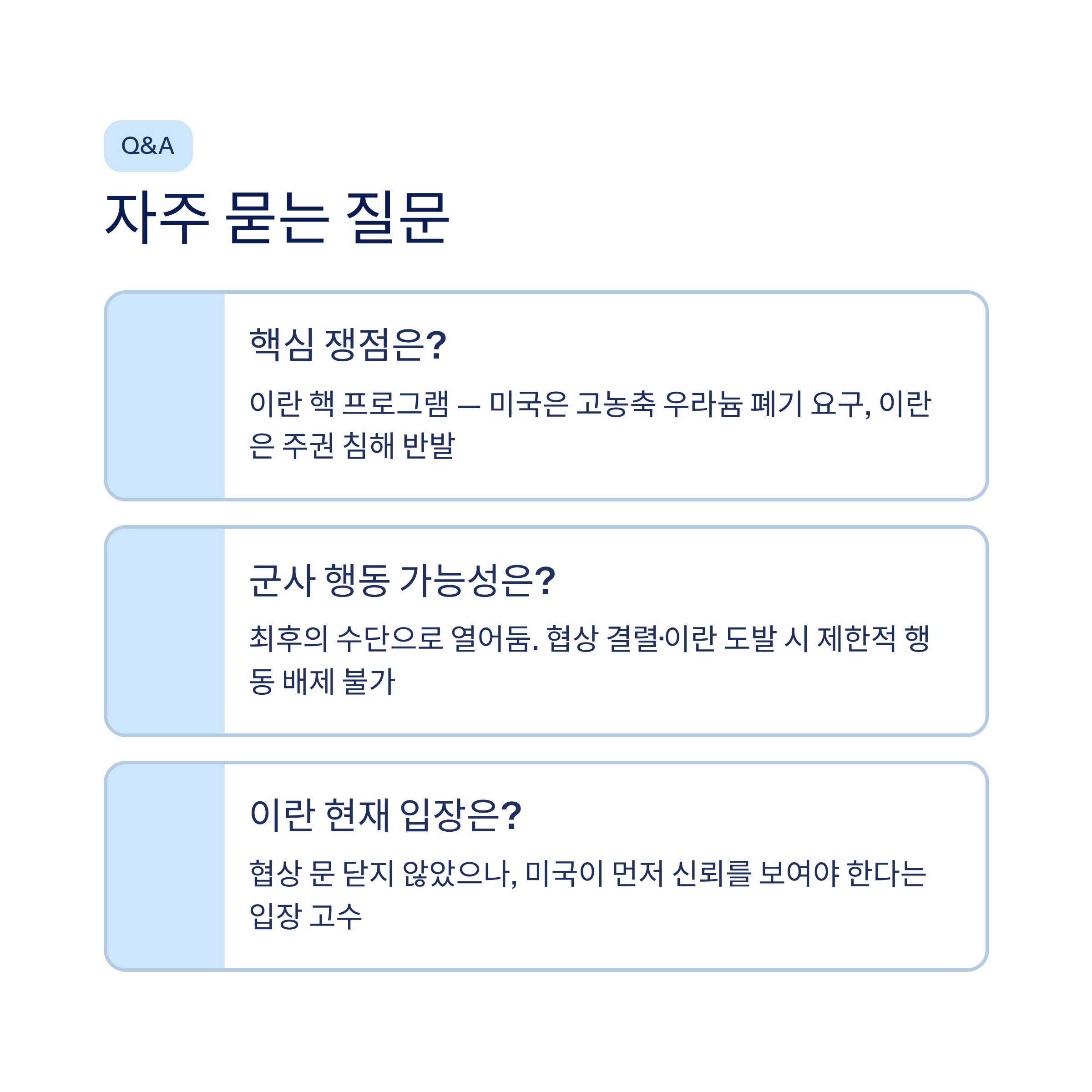 | Q. 미국과 이란 간의 주요 쟁점은 무엇인가요? |