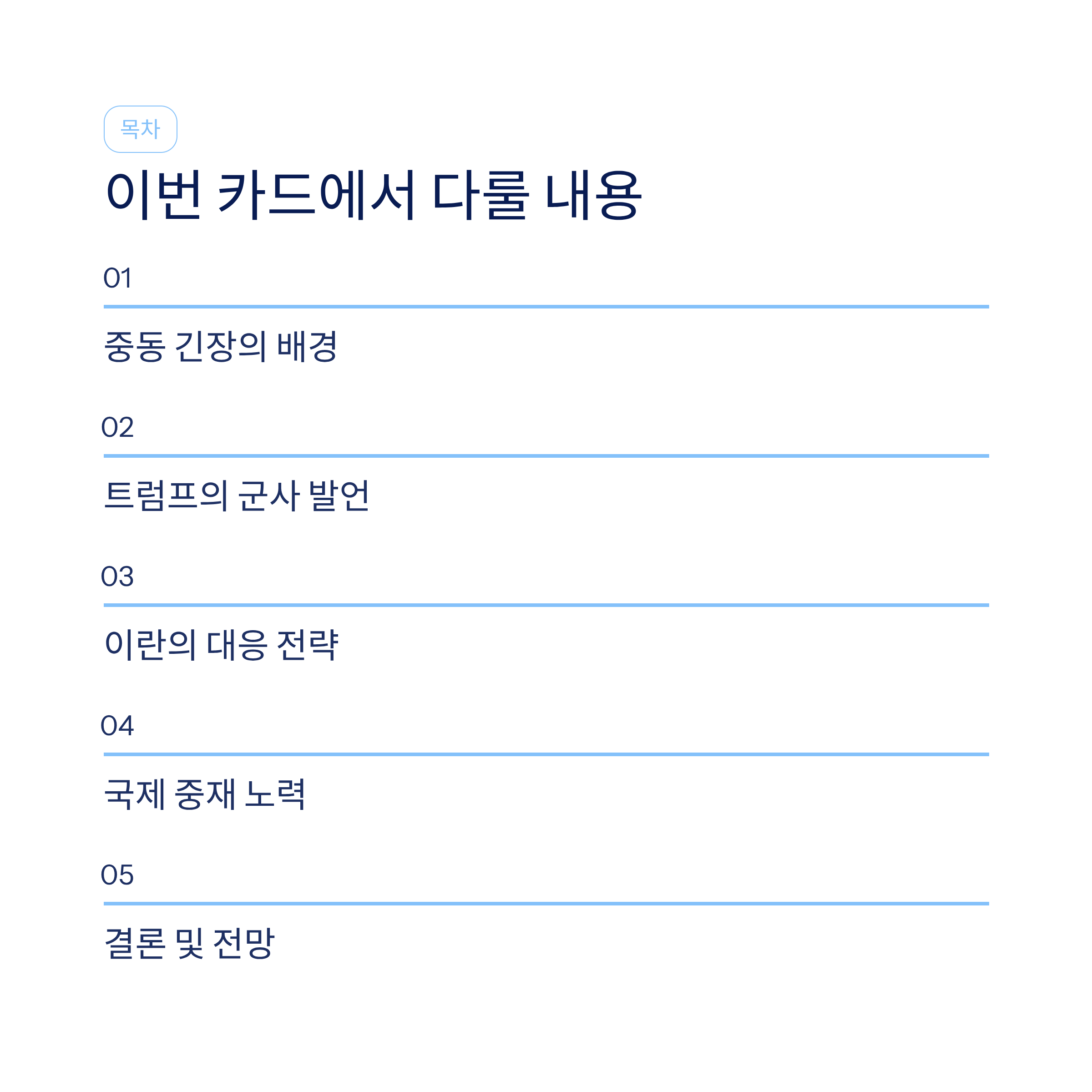 핵심 요약: 미국-이란 갈등 상황판