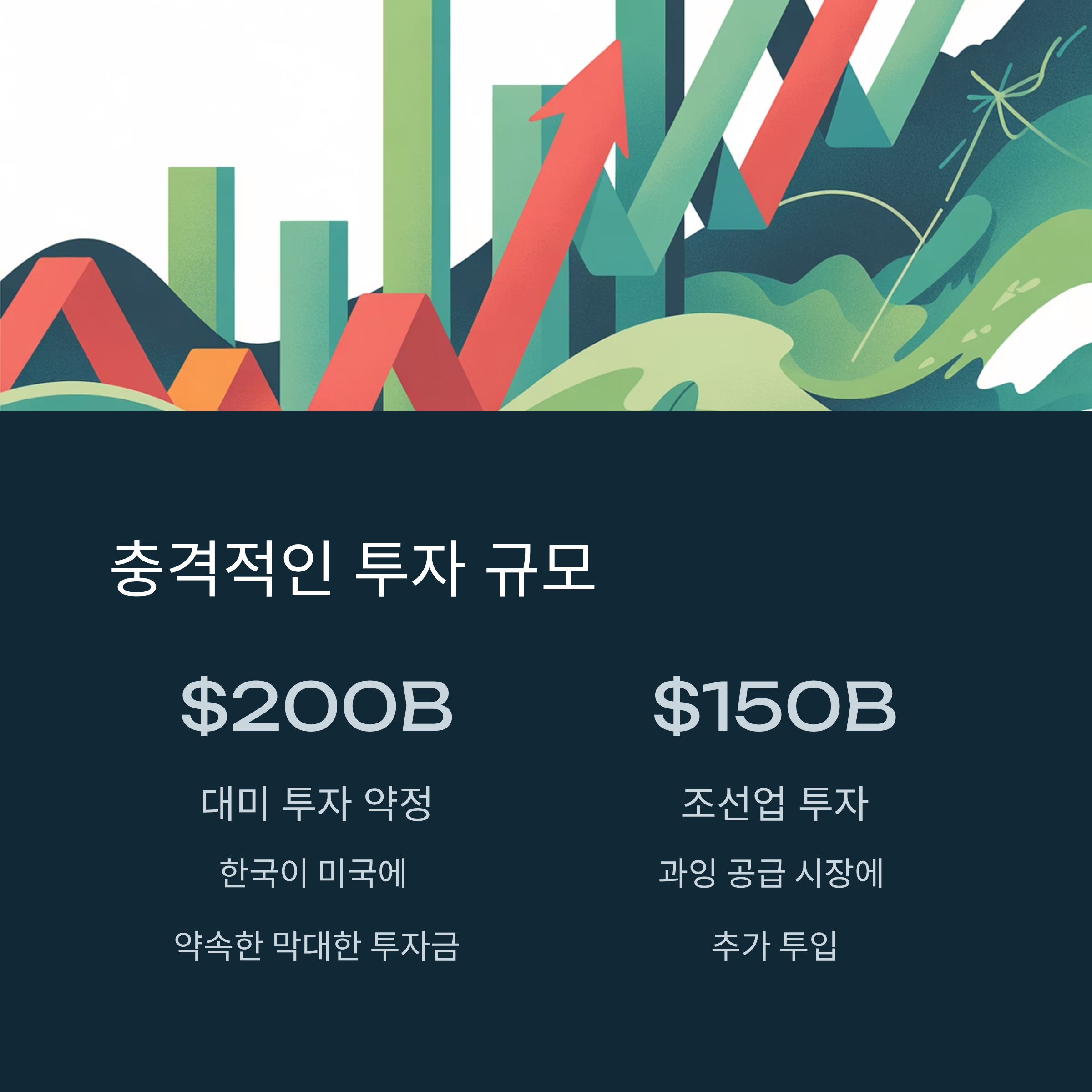 - 한국 측의 협정 내용에는 1,500억 달러에 달하는 조선업 투자와 대미 2,000억 달러 투자 약정이 포함되어 있습니다.