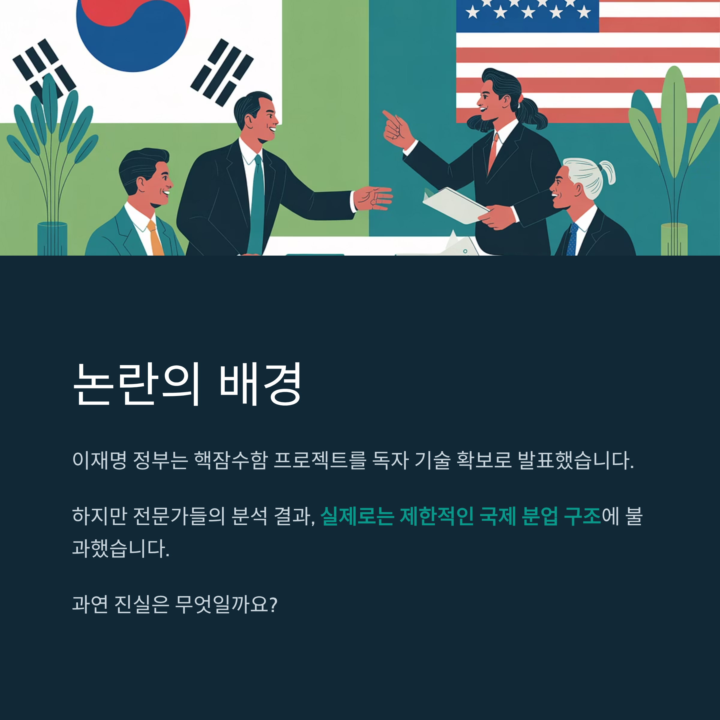최근 한국과 미국 간 핵잠수함 협력에 대한 논란과 함께 그 내막에 대한 진실이 화제가 되고 있습니다. 이재명 정부는 트럼프 전 대통령의 초기 발표로 시작된 핵잠수함 프로젝트를 마치 한국이 독자적으로 보유력을 갖춘 것처럼 알렸습니다. 그러나 전문가들의 분석과 미국의 공식 발표에 따르면 한국은 기술 독립 상태가 아닌 제한적인 국제 분업 구조에 포함되어 있습니다. 이 글에서는 그러한 논란의 배경부터 각각의 역할, 그리고 정치적 포장과 사실 사이의 간극을 심도 있게 다뤄보겠습니다.