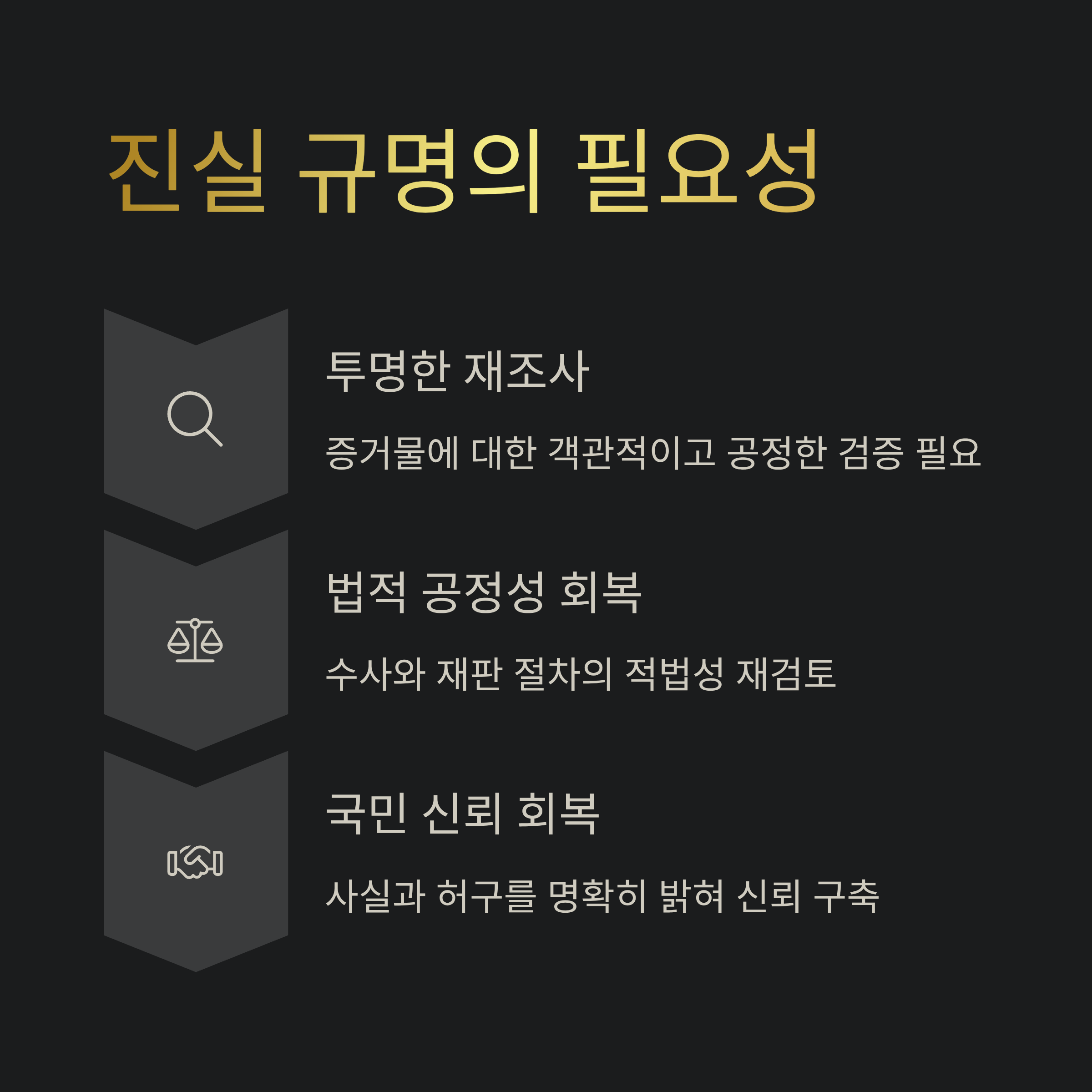 향후 이 사건에서 정부와 사법 당국은 더 이상 미온적으로 대응하지 말고, 투명하고 공정한 재조사를 통해 사실과 허구를 분명히 밝혀내야 한다. 이를 통해 국민 신뢰를 회복하고, 이 사건을 계기로 정치적 부당 행위와 법적 왜곡의 반복을 방지해야 한다.