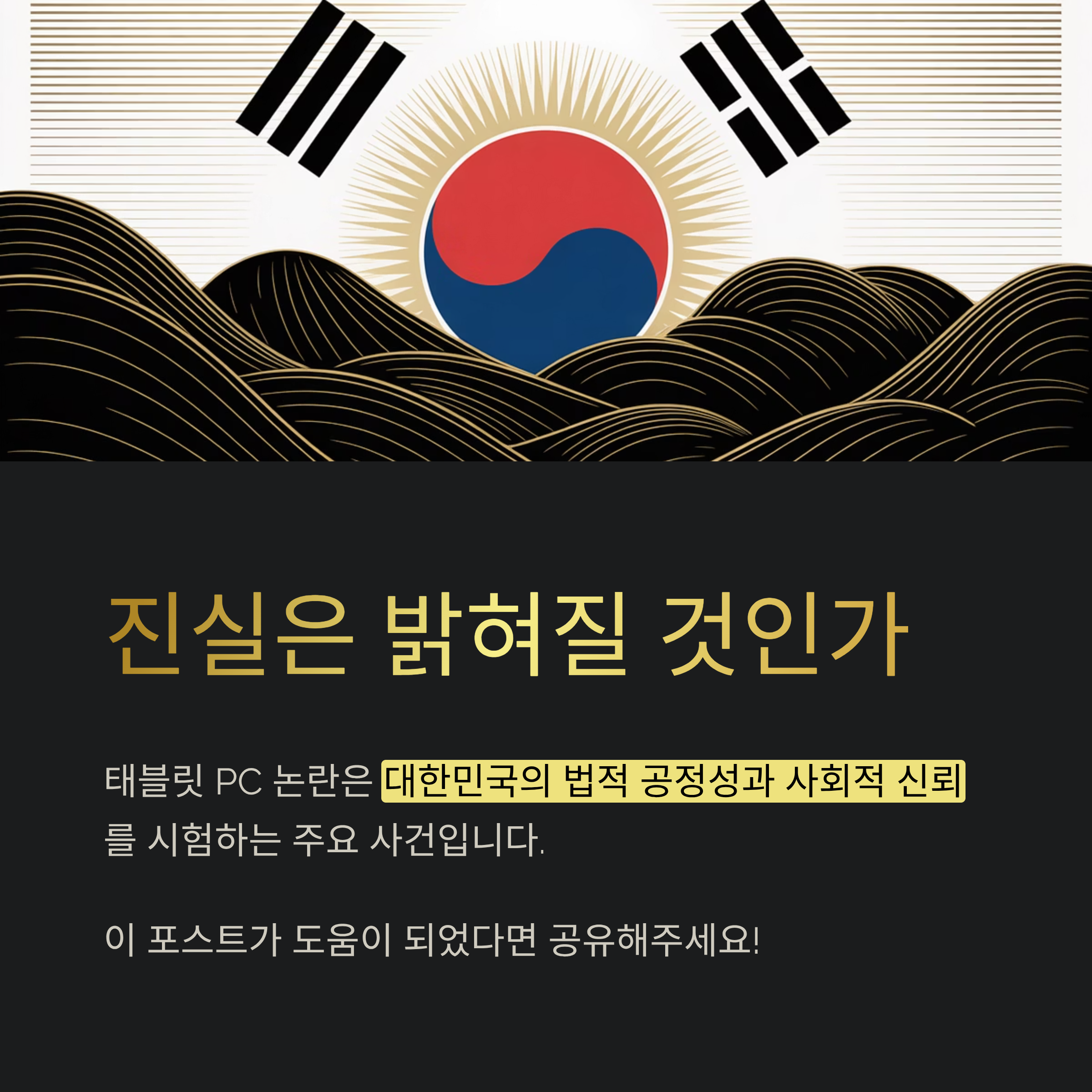 태블릿 PC 논란은 단순히 하나의 사건을 넘어 대한민국의 법적 공정성과 사회적 신뢰를 시험하는 주요 사건으로 자리 잡고 있다. 최서원 씨와 변호인들이 주장하는 증거 조작 의혹, 그리고 그에 따른 석방 지연 논란은 단지 관련 당사자의 문제가 아니다. 이는 법과 정의에 대한 구조적 개선을 요구하는 강력한 시그널이다.
