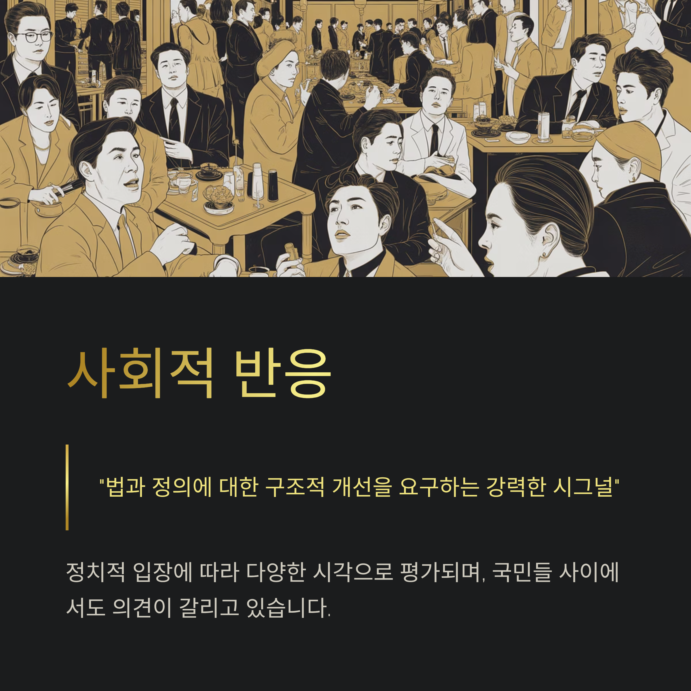 다수의 국민과 법조계는 공정한 조사와 재판이 이루어지지 않았다는 주장에 공감하며, 사회적 균열이 더욱 악화되고 있다. 특히, 사건 당시 얽혀 있던 정치적 대립과 미디어의 보도가 현재까지도 논란의 중심이 되고 있다. 이와 같은 문제는 법적 신뢰 문제로 이어져, 재판 판결의 신뢰성을 약화시키고 이어지는 사회적 혼란을 심화시킬 가능성이 있다.