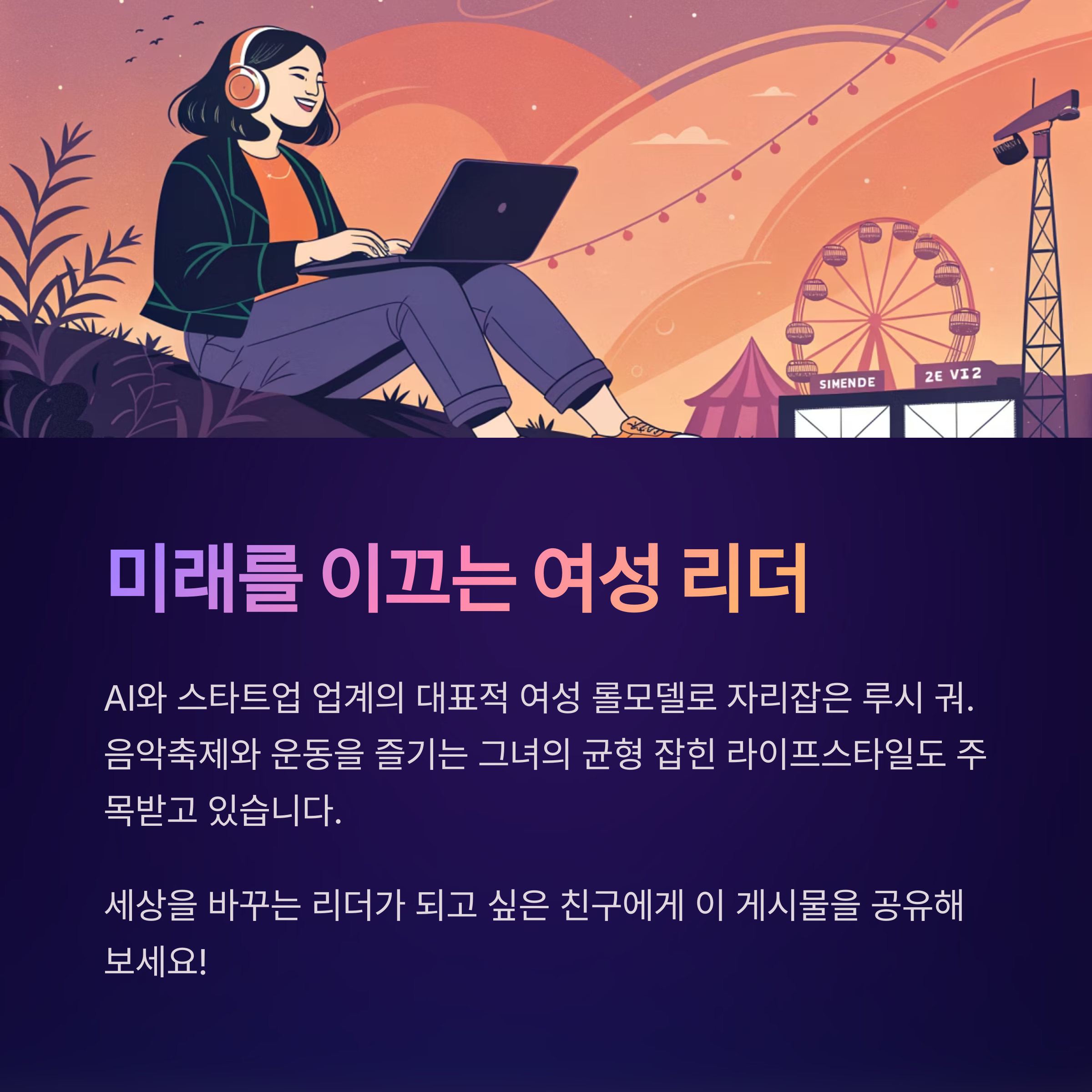 AI 비즈니스와 스타트업 창업의 성공 사례로 큰 영향력을 발휘하며, SNS에서도 그녀의 라이프스타일이 큰 관심을 받고 있습니다.