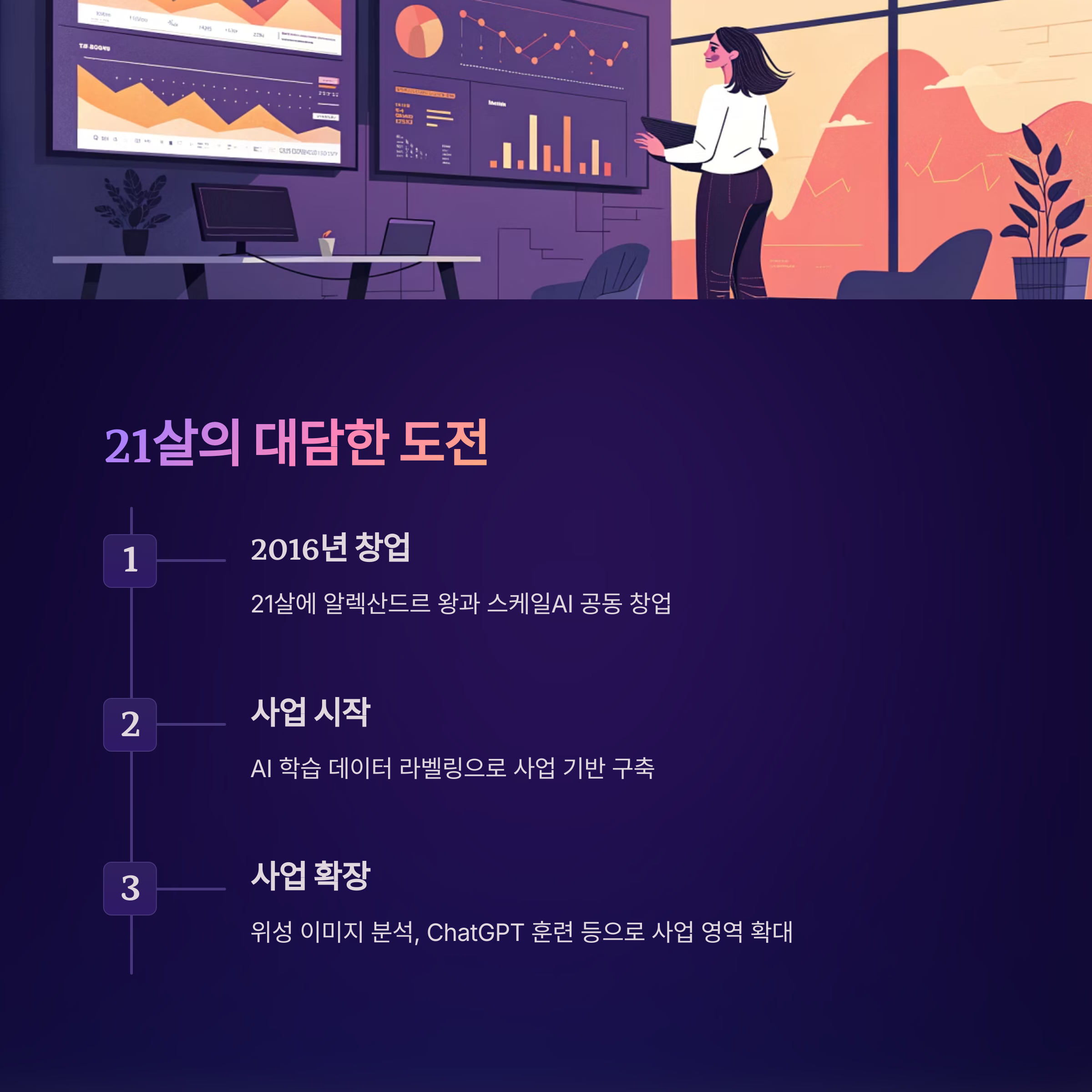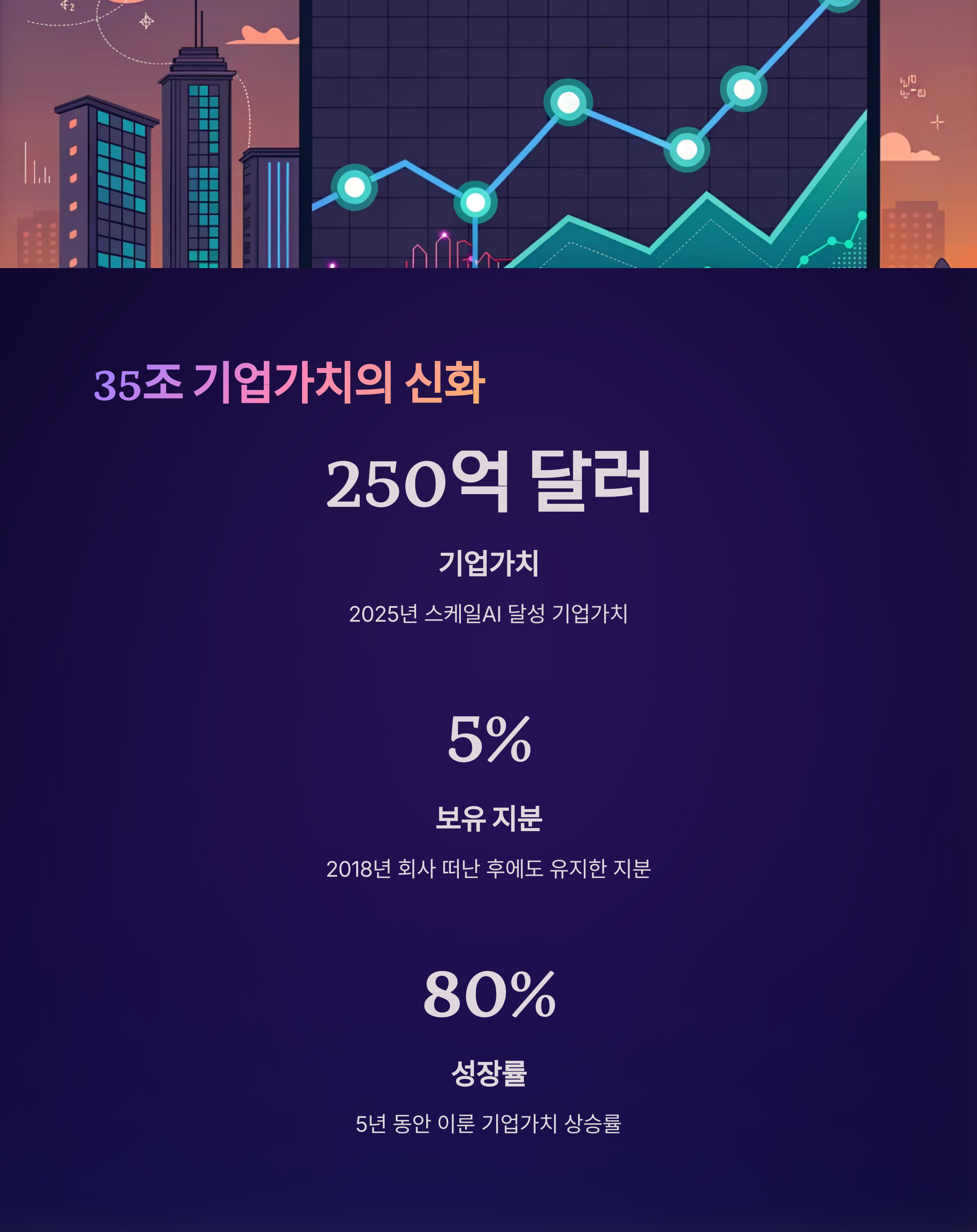 '스케일AI'의 창업자로서 기업 가치를 약 250억 달러(35조 7500억 원)까지 성장시켰습니다.