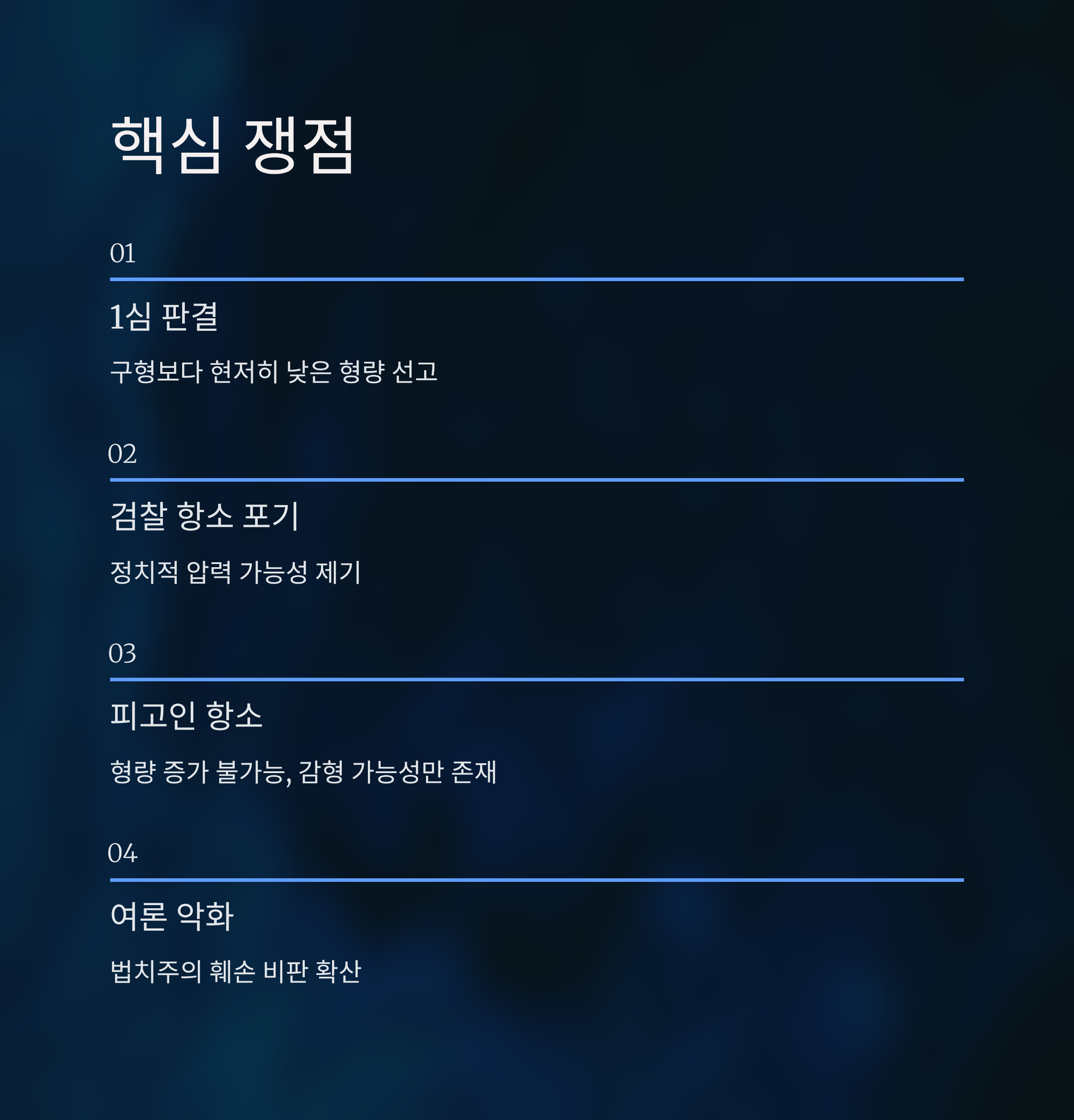 - 검찰의 결정: 검찰이 항소를 포기하며, 정치적 배경과 외부 압력 가능성이 공론화됨.