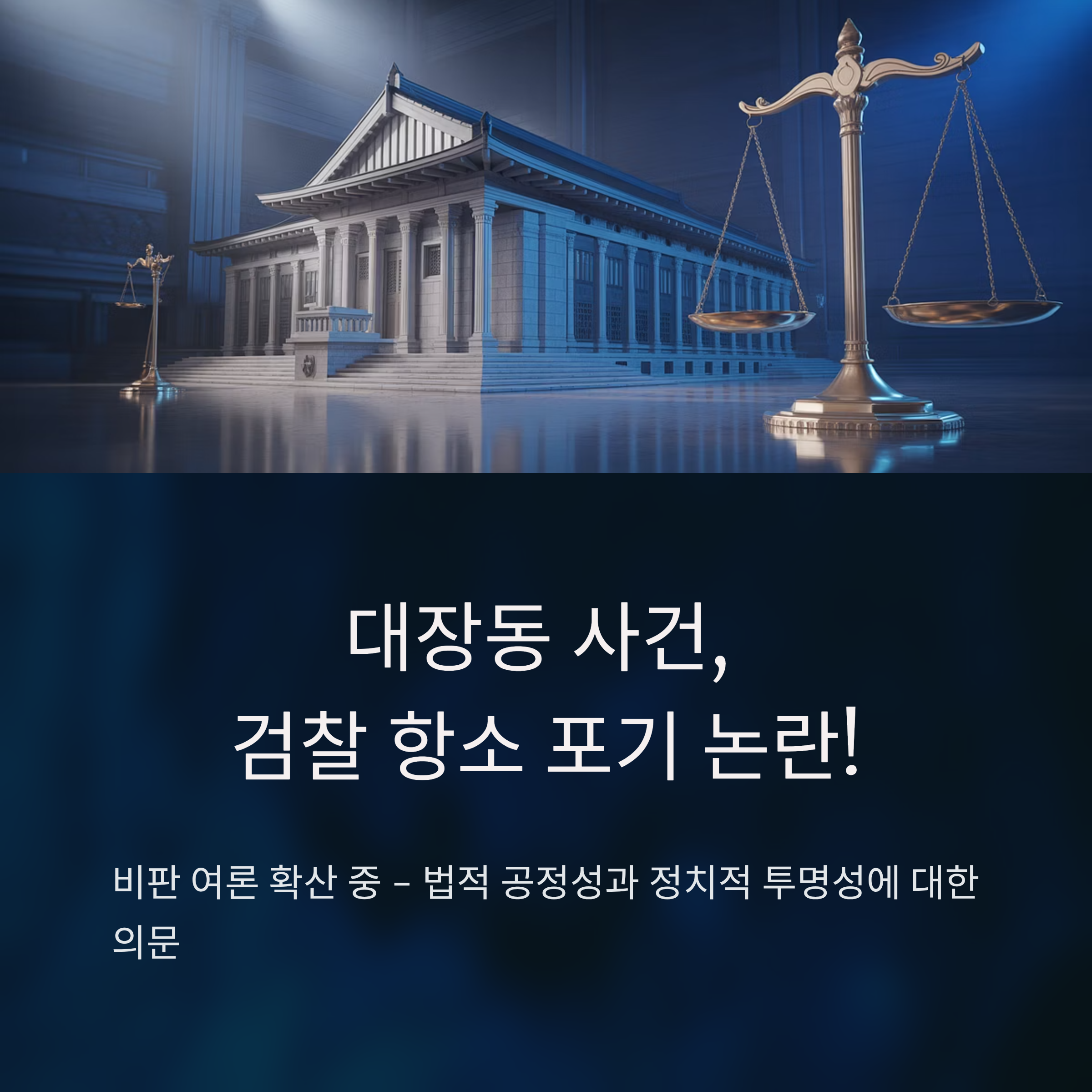 관련 태그: 대장동 사건, 검찰 항소 포기, 정치적 압력, 법적 정의, 대한민국 검찰, 사법 개혁