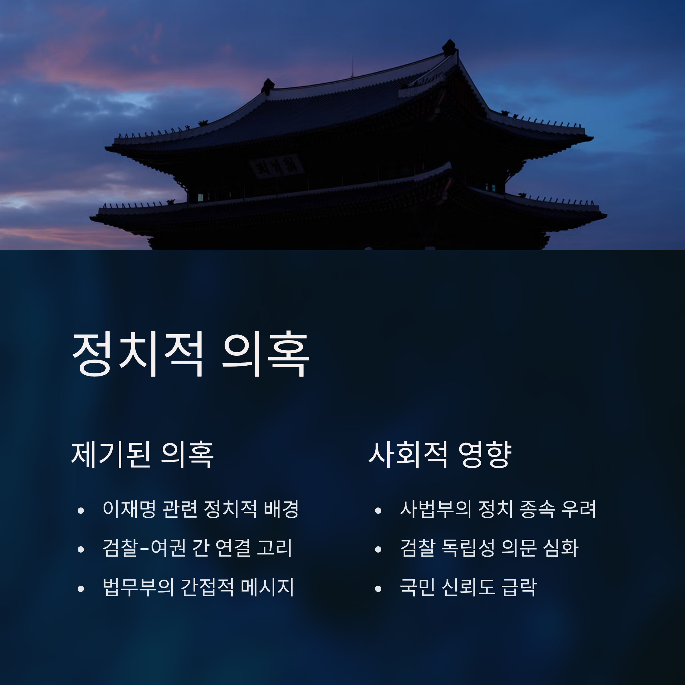 - 여론 반응: 검찰의 정치 중립성과 법치주의 훼손에 대해 국민들의 강도 높은 비판이 이어짐.