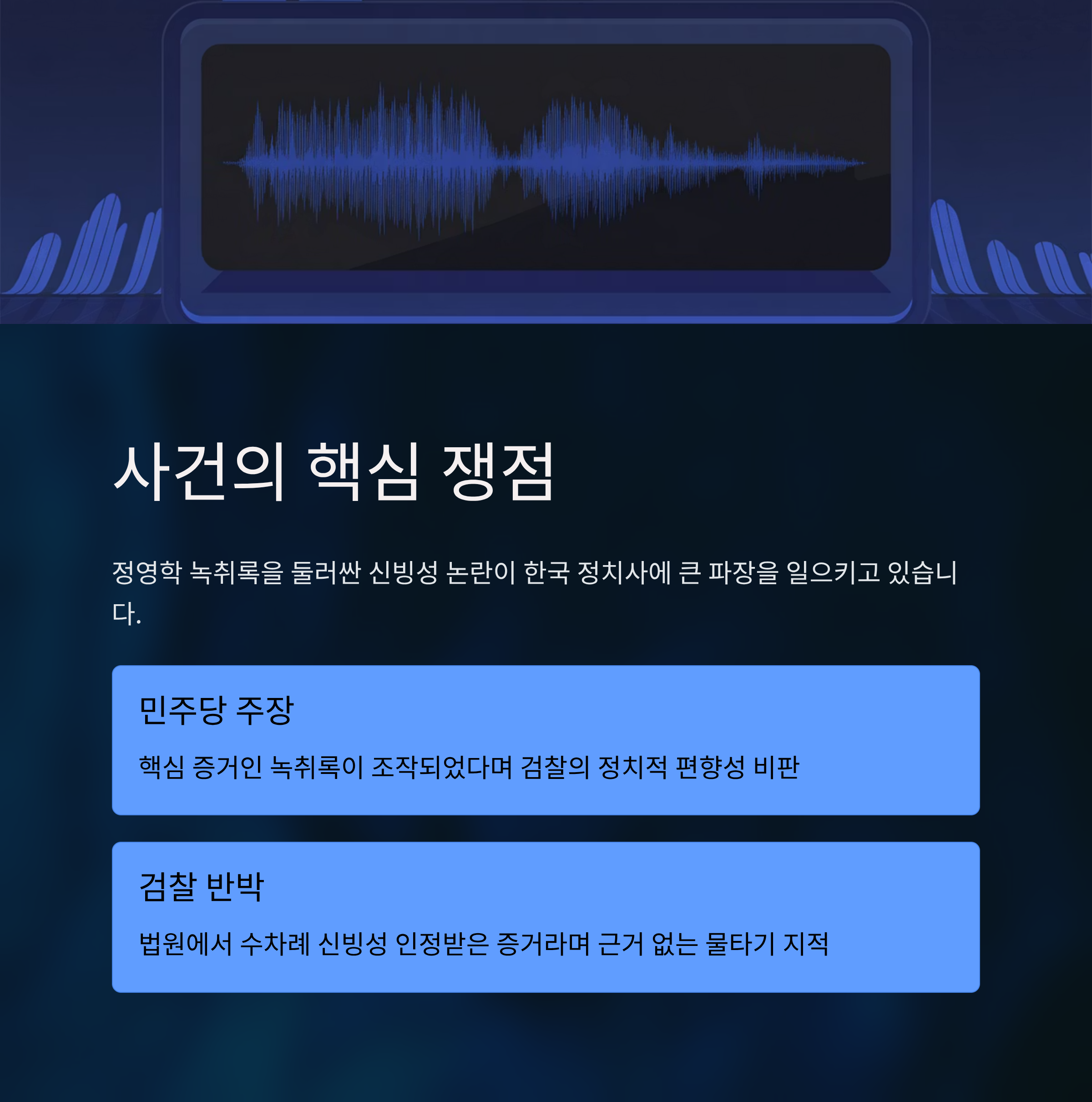 관련 태그: 대장동 사건, 정영학 녹취록, 증거조작 논란, 한국 정치, 법치주의, 민주당 주장, 검찰 반박